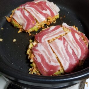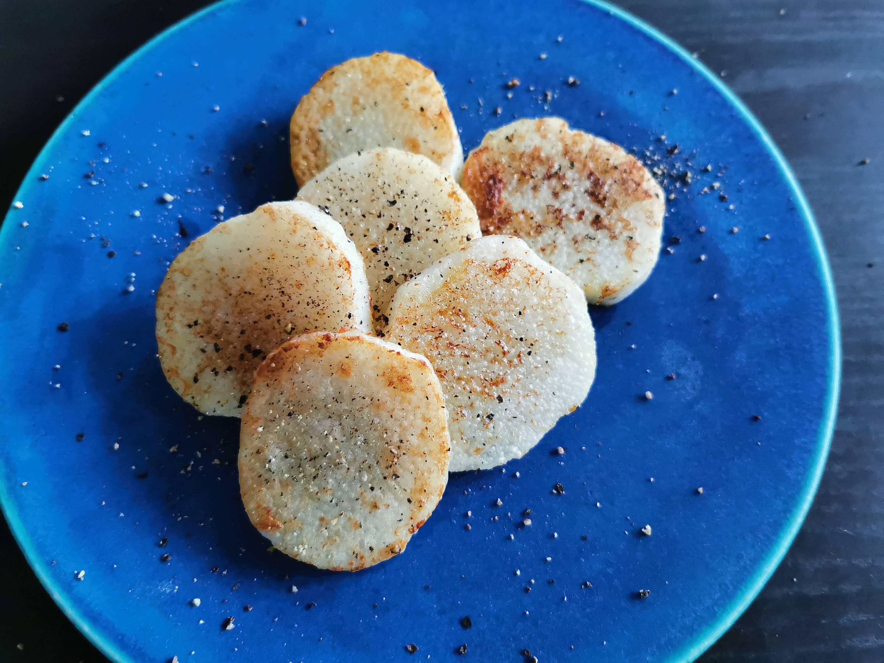 焼き色がつく程度に両面を加熱し、塩・胡椒をする。
