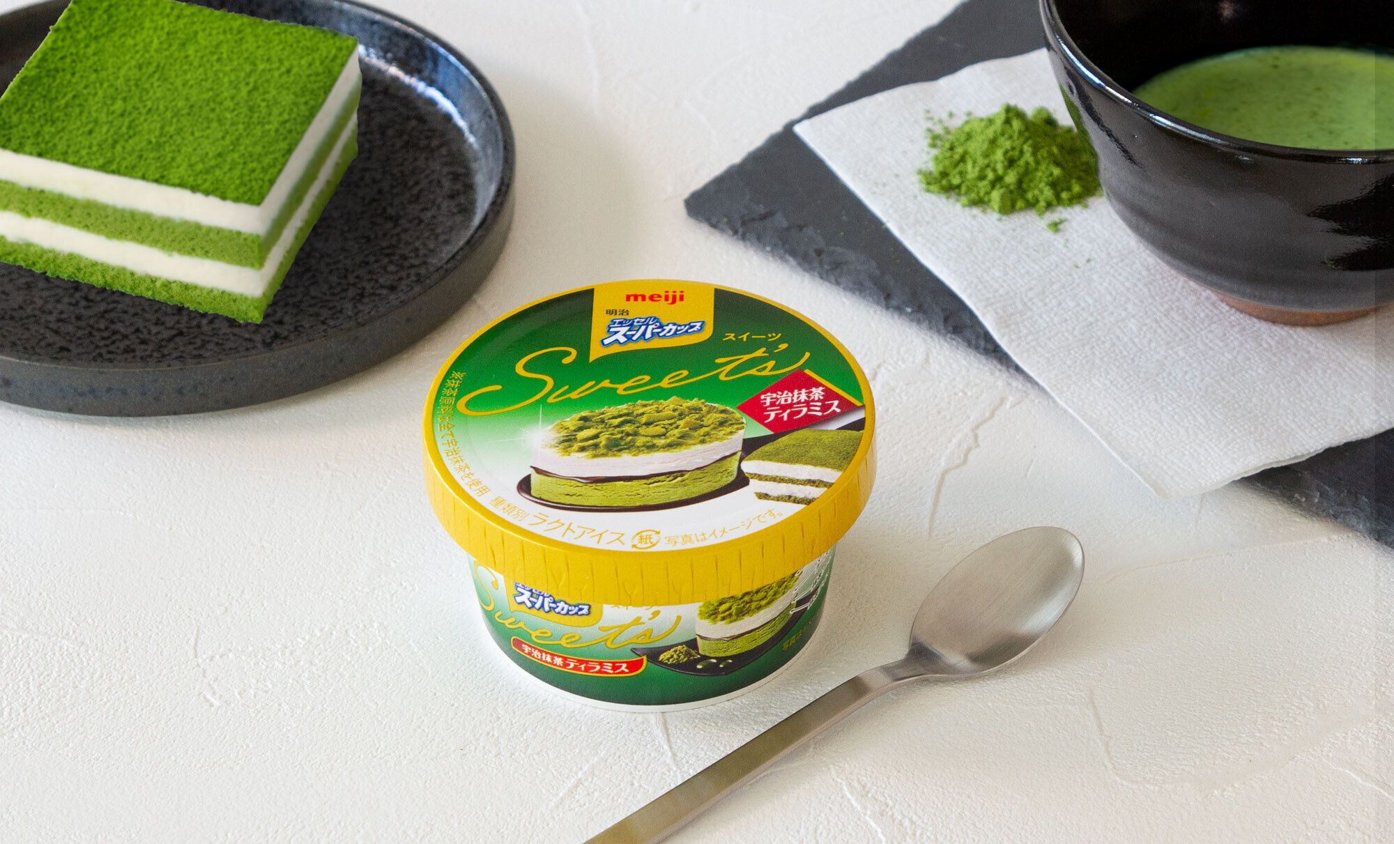 「明治 エッセル スーパーカップSweet‘s 宇治抹茶ティラミス」は、抹茶の様々な味わいと、マスカルポーネチーズアイスが織りなす絶妙なマリアージュが美味しさの秘訣です。