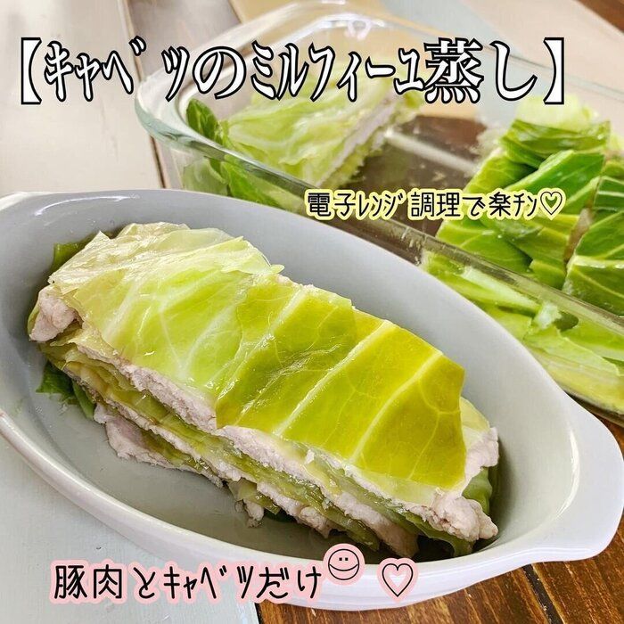 続いて紹介するのは、電子レンジで楽に調理ができる「キャベツのミルフィーユ蒸し」です。