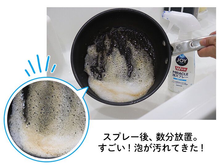 そこで、油汚れがするする落ちるとうわさの「ジョイ W除菌ミラクル泡スプレー」を使ってもらいました。その結果は…。