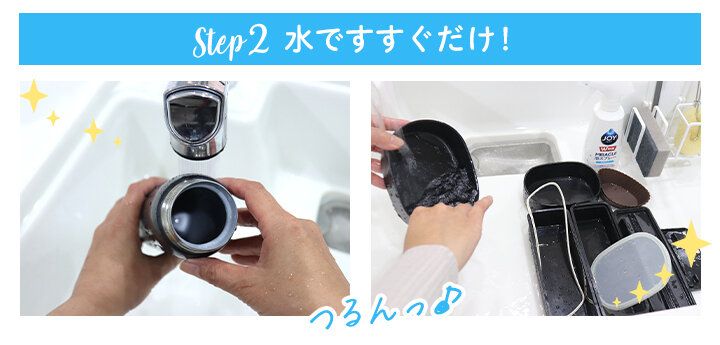 さらに…洗いにくい水筒の底やお弁当箱の溝まで、2つの泡でラクしてきれい!