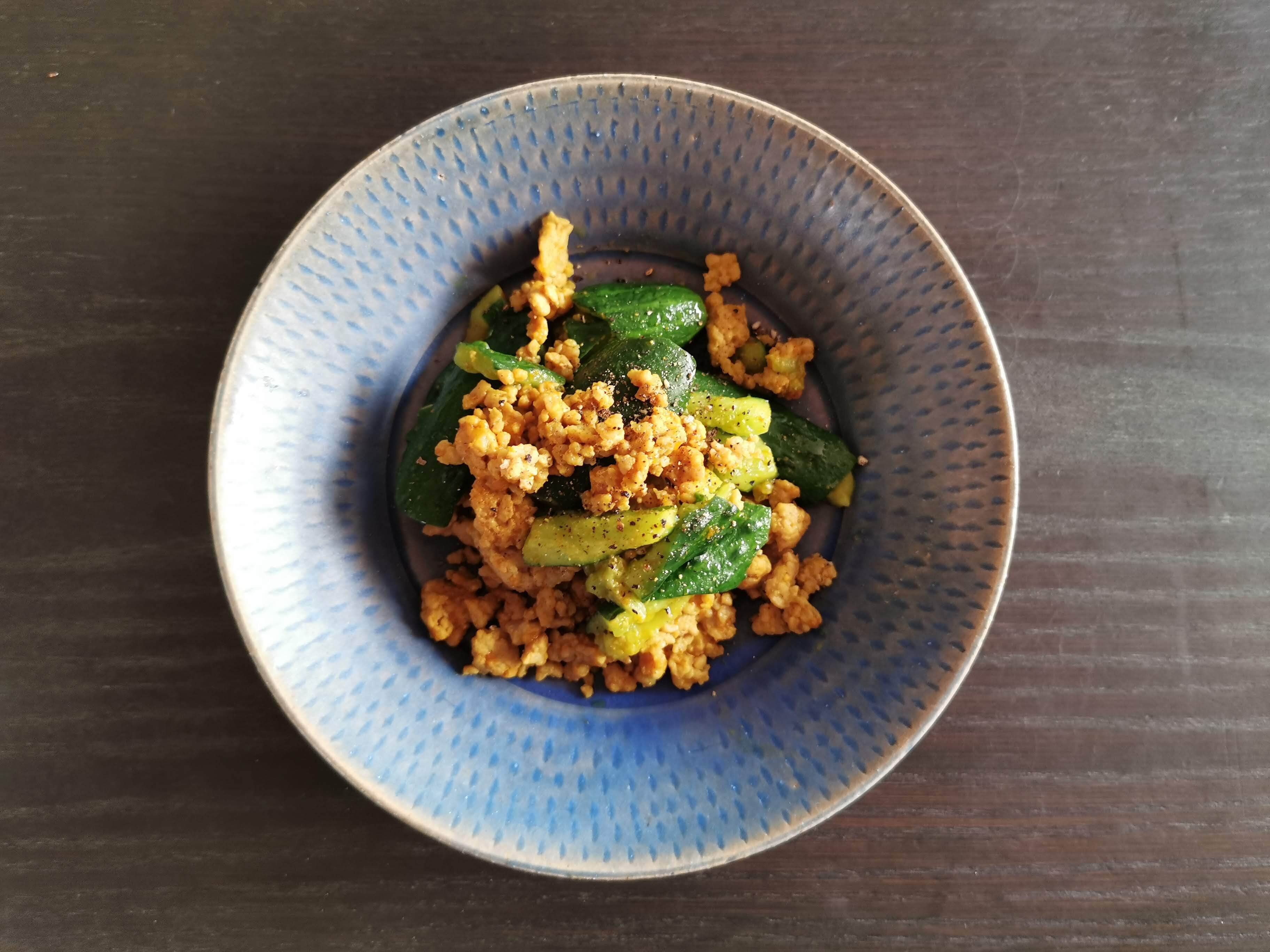 きゅうりと豚ひき肉のカレーチーズ炒めレシピ