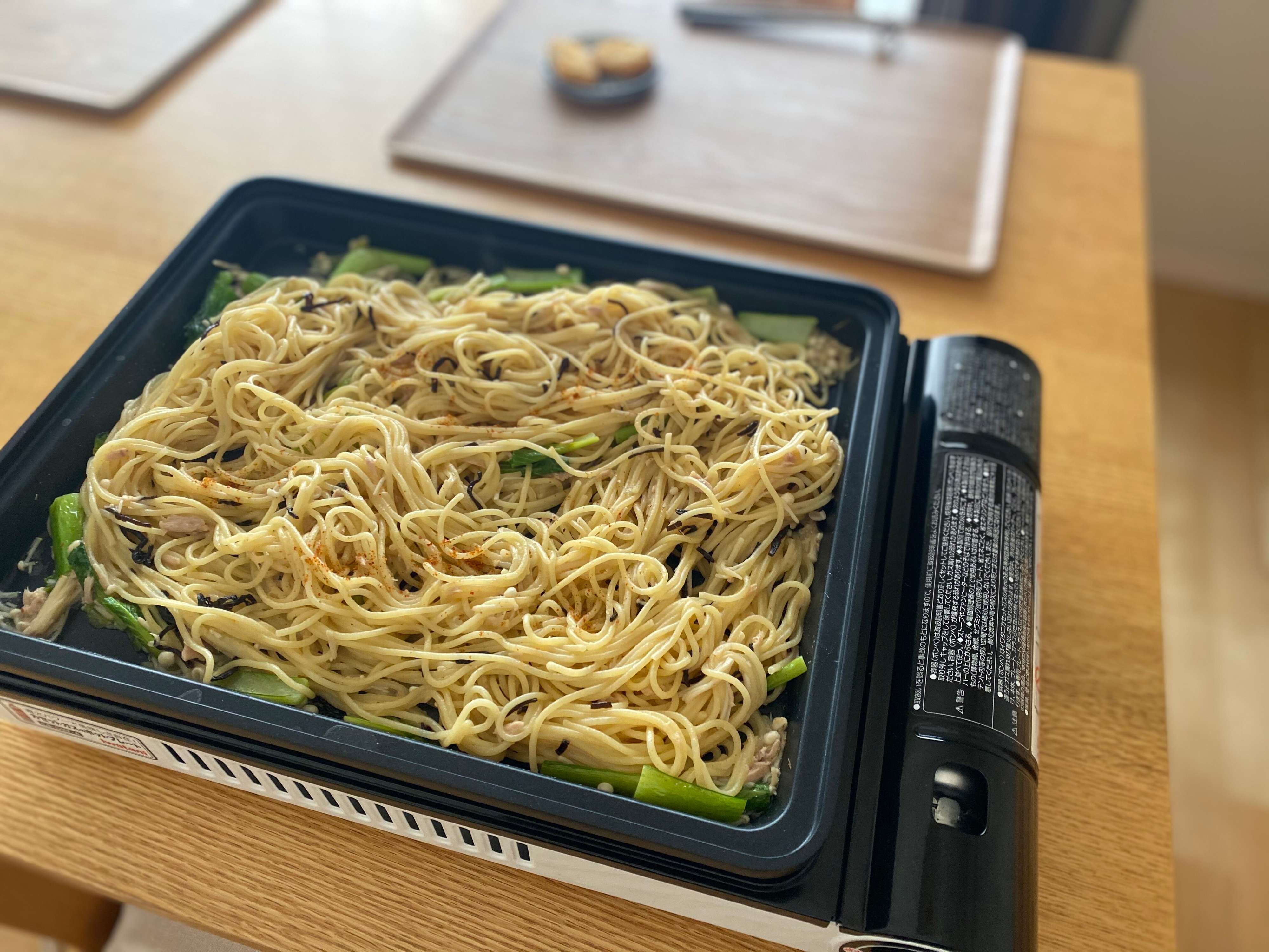 また、わが家では停電時でも使用できるカセットボンベ熱源のホットプレートを使用しています。