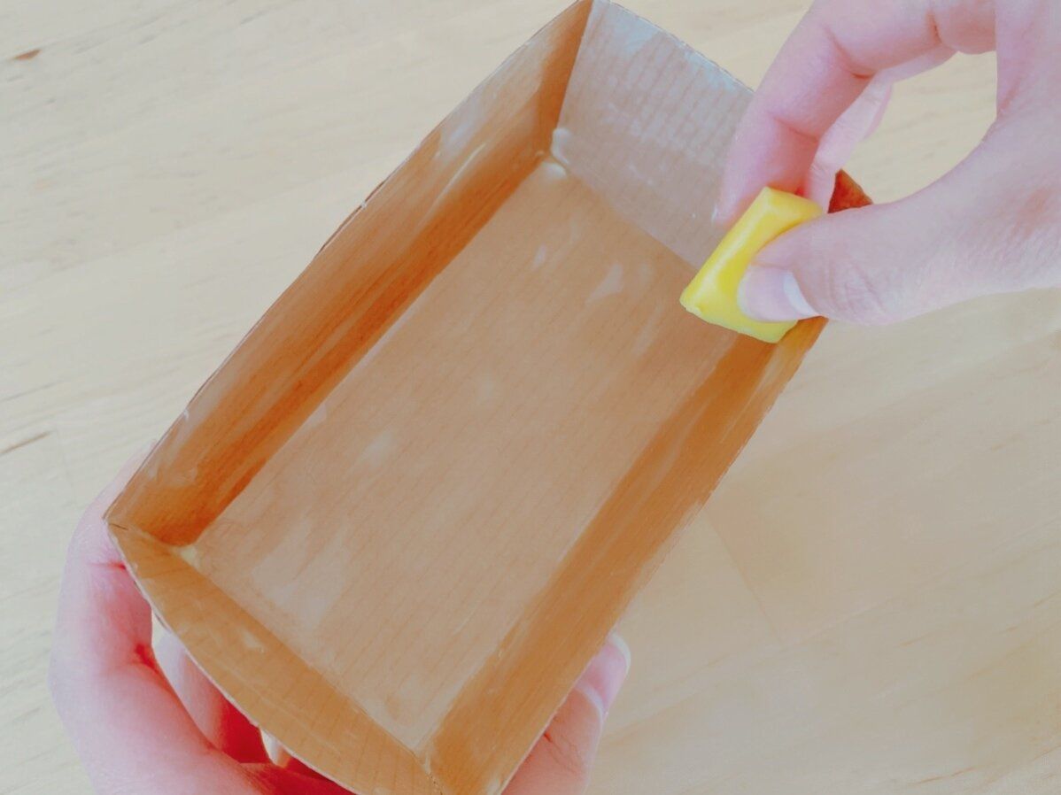 100円ショップでも購入できる紙製の型でOK(なければレンジ対応の保存容器でも代用可)