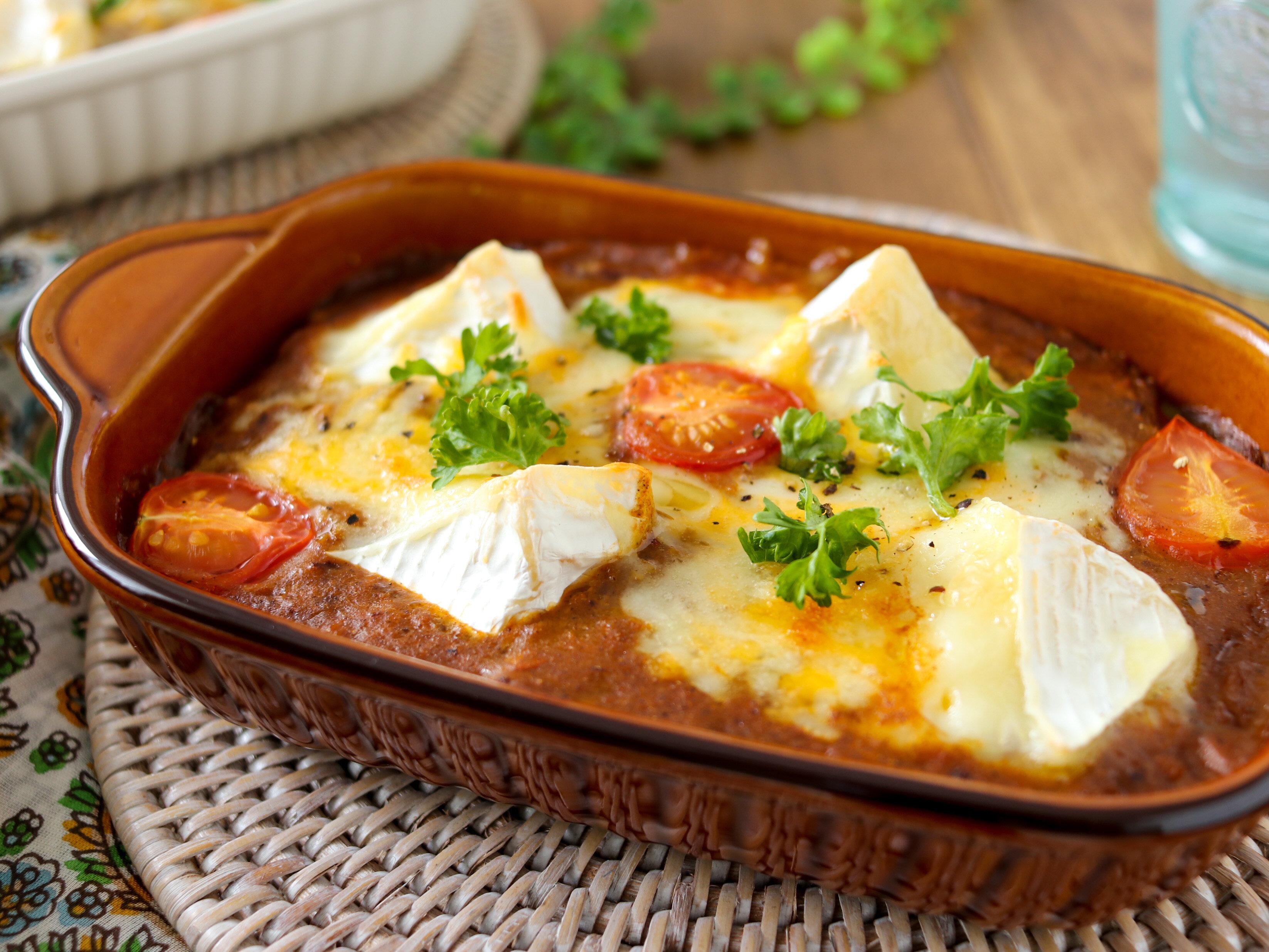 上のカマンベールチーズがとろり♪さらにスプーンですくうと、中のチーズもとろ〜り。熱いうちにおめしあがりくださいね。