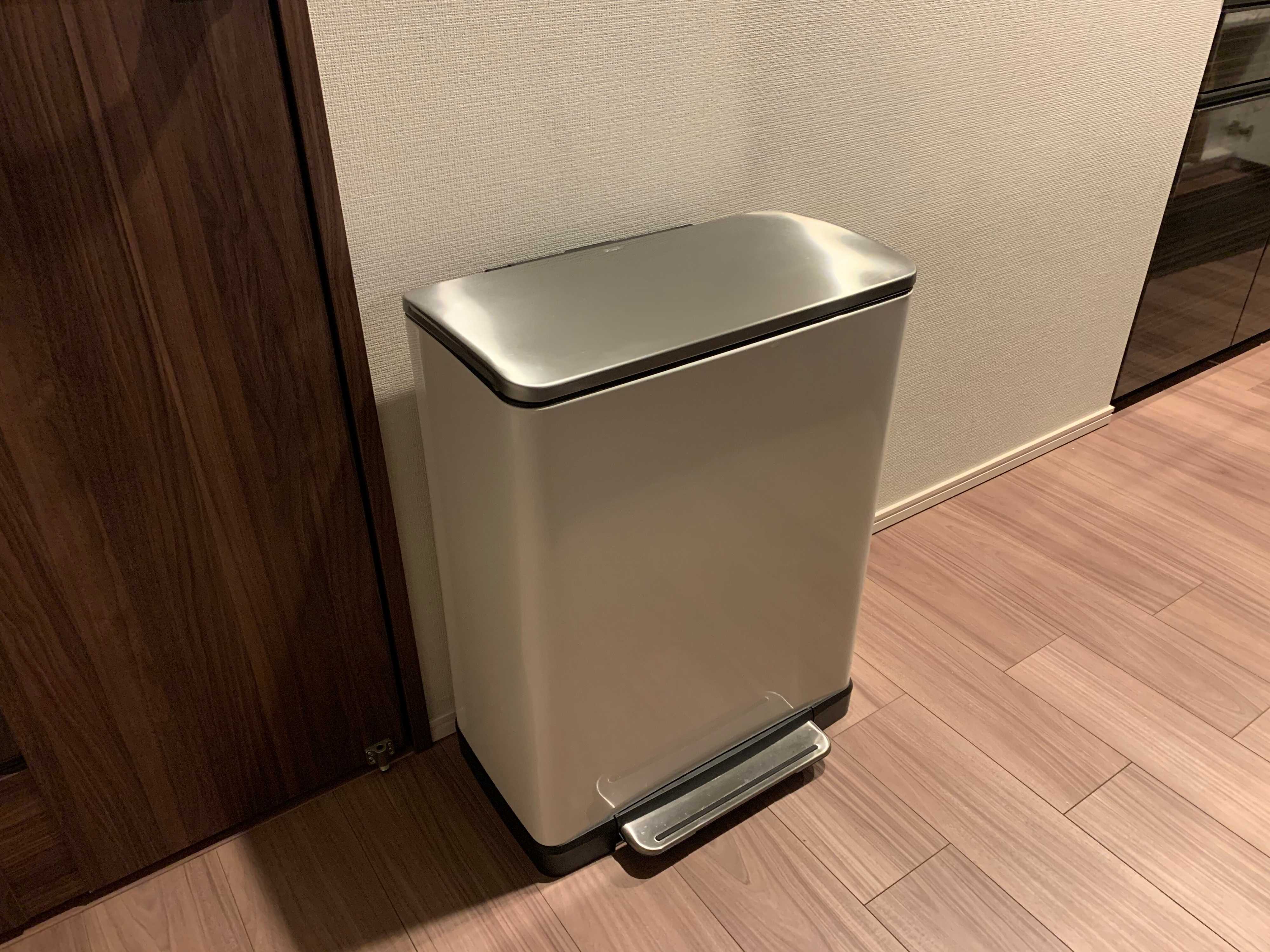 家にゴミ箱は2つだけ。キッチンに大きなゴミ箱、脱衣所に小さなゴミ箱です。溜まったゴミを集めるわずらわしい作業がなくなりました!