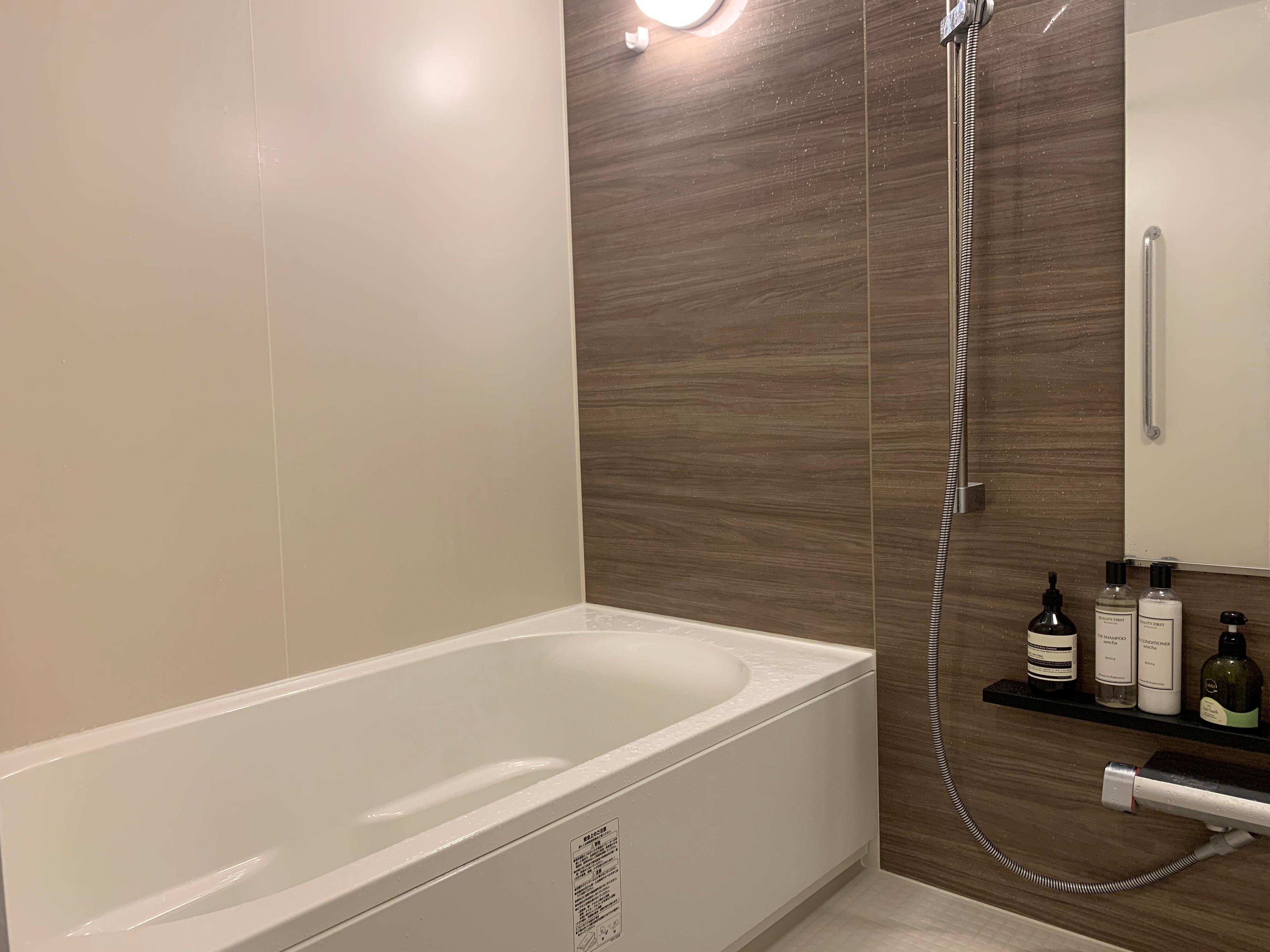 毎日掃除するのは、皮脂や汚れが溜まりやすい浴槽のみ。お風呂上がりに、吹きかけるタイプのバスクリーナーでシュッとして洗い流せば完了。排水口のゴミを捨てれば完璧です。ふたや壁などは週1の掃除できれいが保てます。