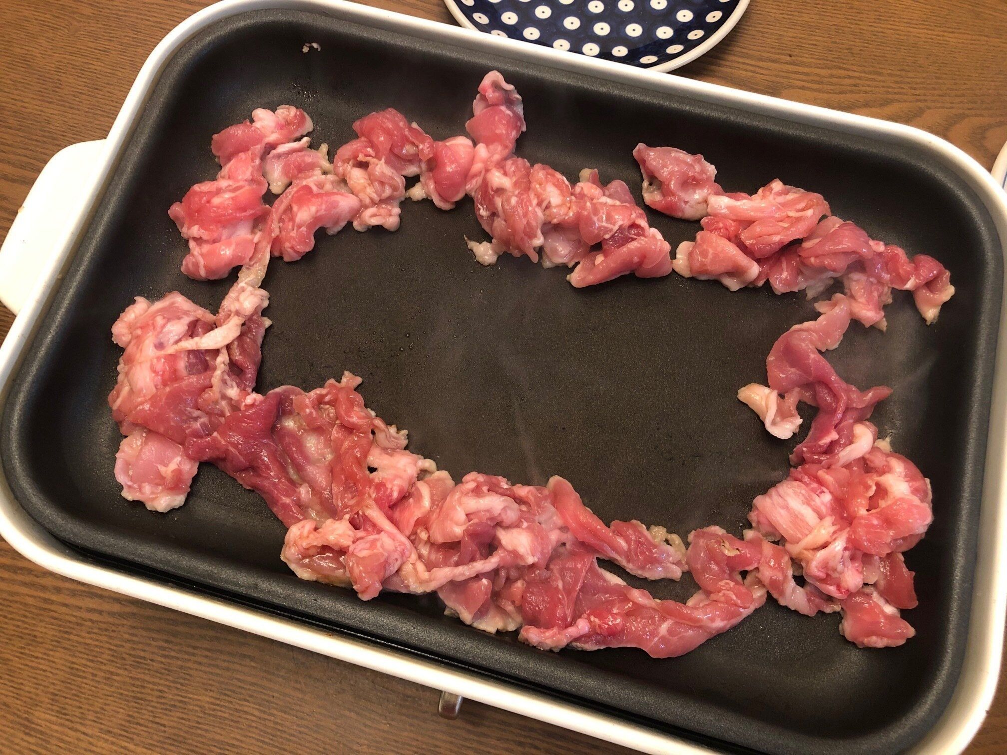 真ん中を空けて、お肉をぐるっとホットプレートにのせます。