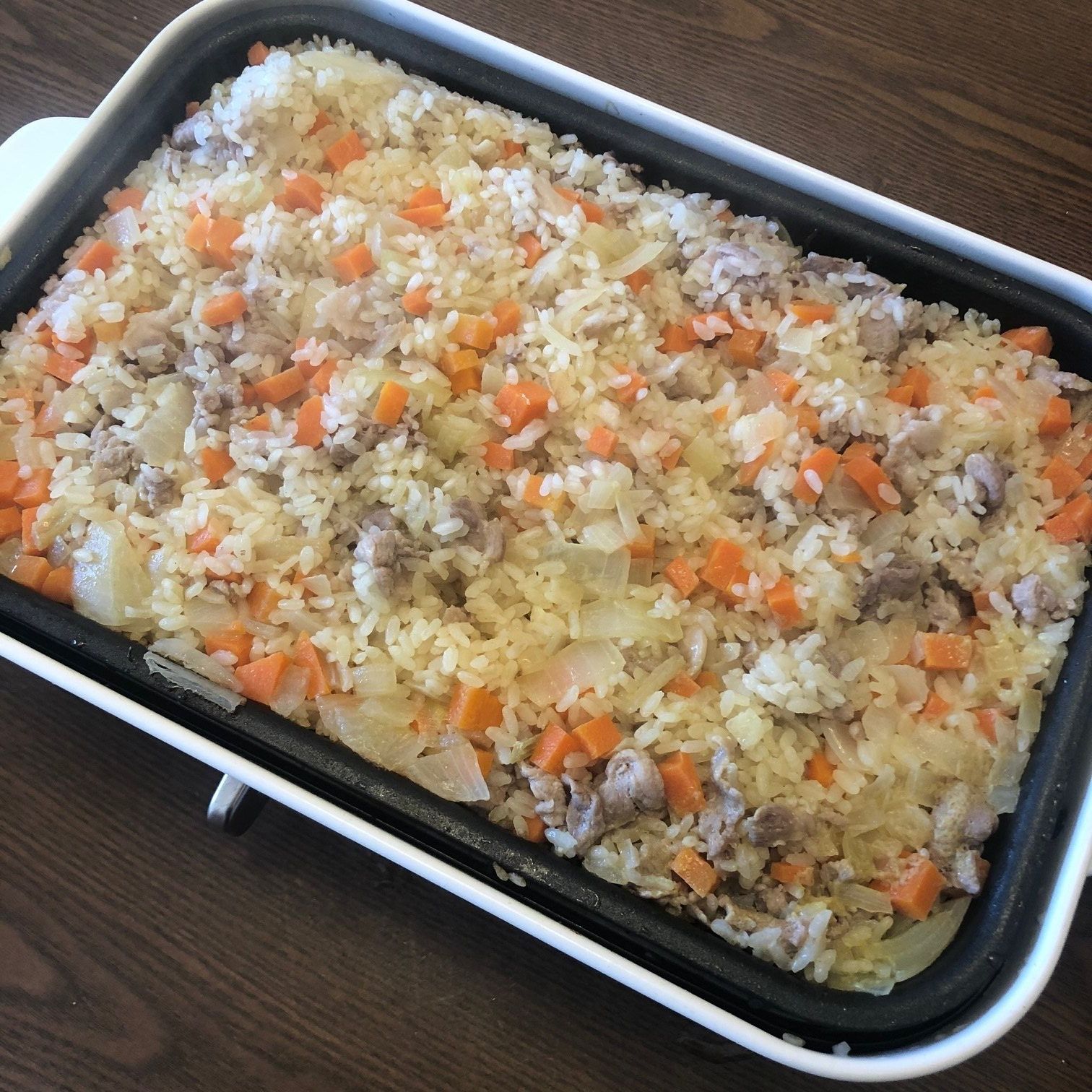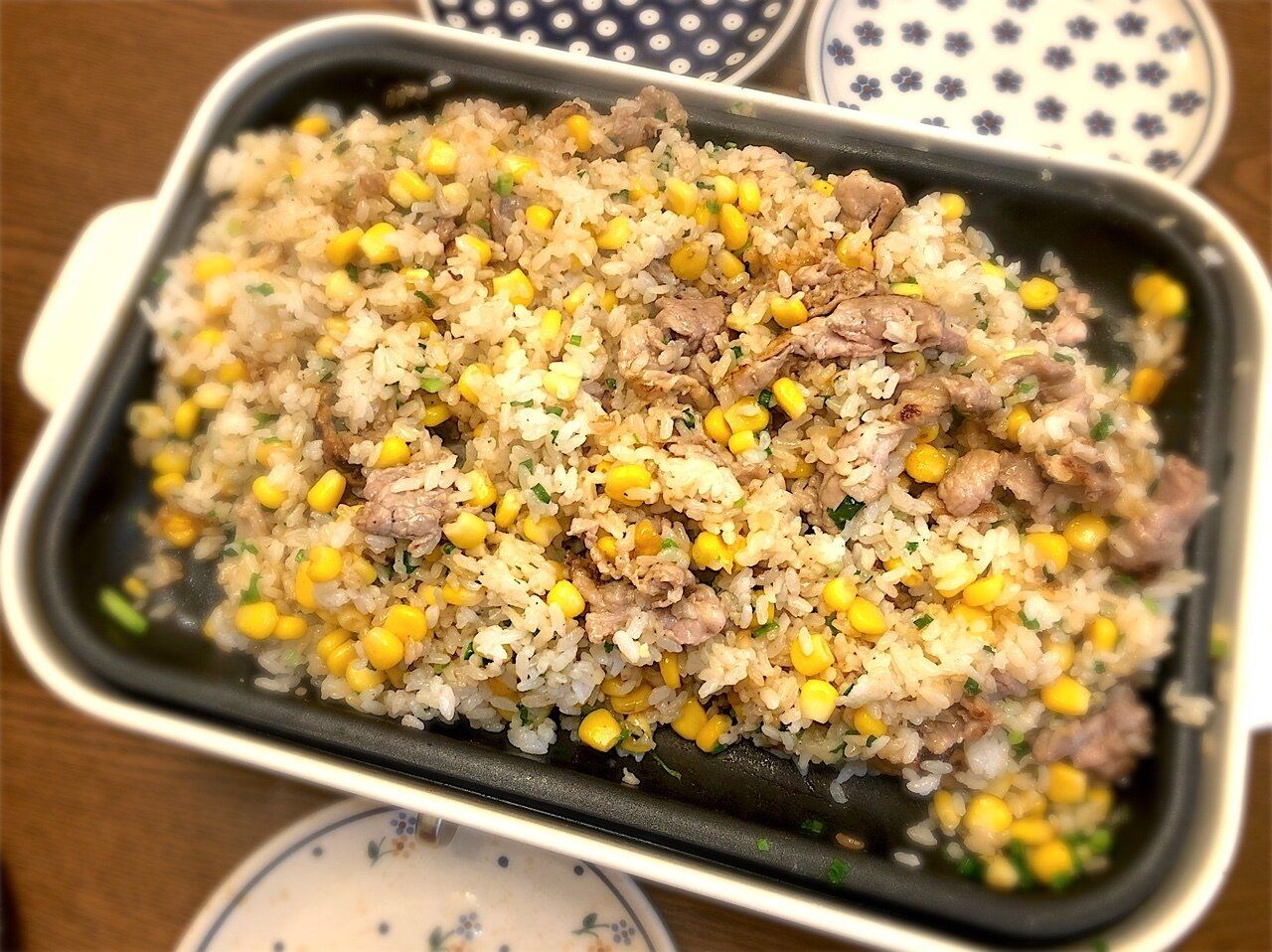 ご飯を炊いてネギを切るくらいの下準備をしておけば、あとは全部ホットプレートの上で調理が出来てあっという間に完成します。味付けは焼き肉のタレにおまかせなので失敗もありません。目安の量を書きましたが、お肉もご飯も具もタレも、好きな物や好きな量で全然OKです。適当でも大丈夫!簡単ですがなんだか豪華に見えて、家族みんなでの食事にピッタリです。ぜひお試しくださいね。