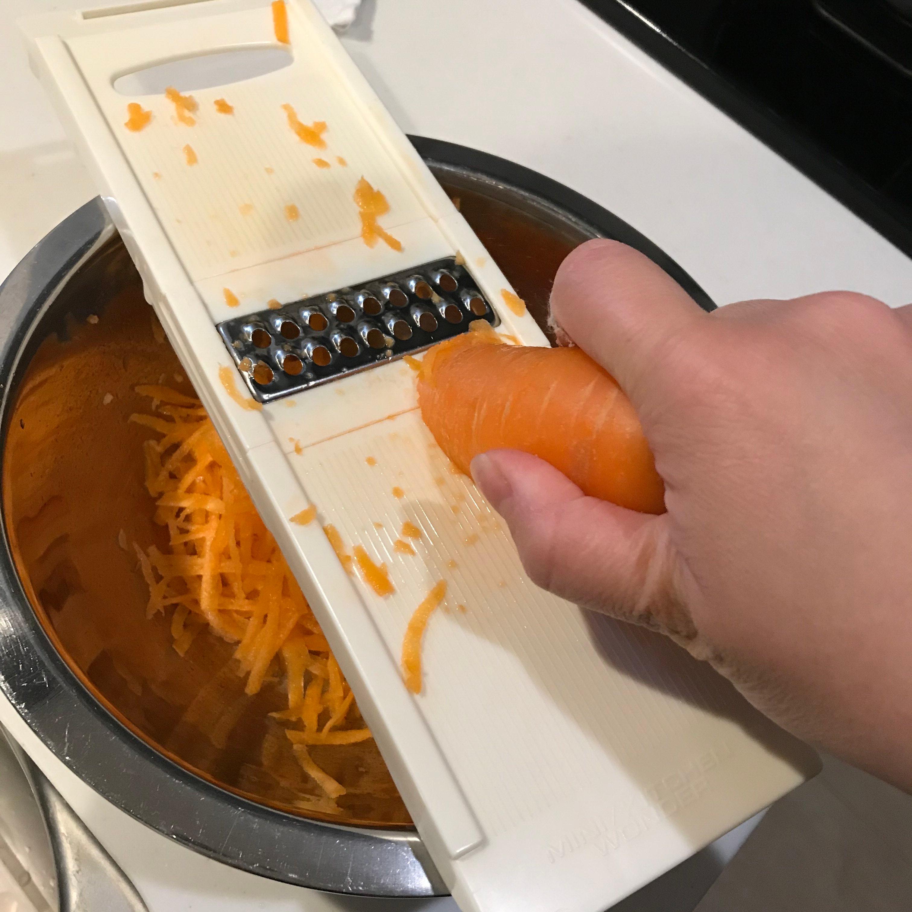 まずは人参を皮ごと千切り器にかけていきます。