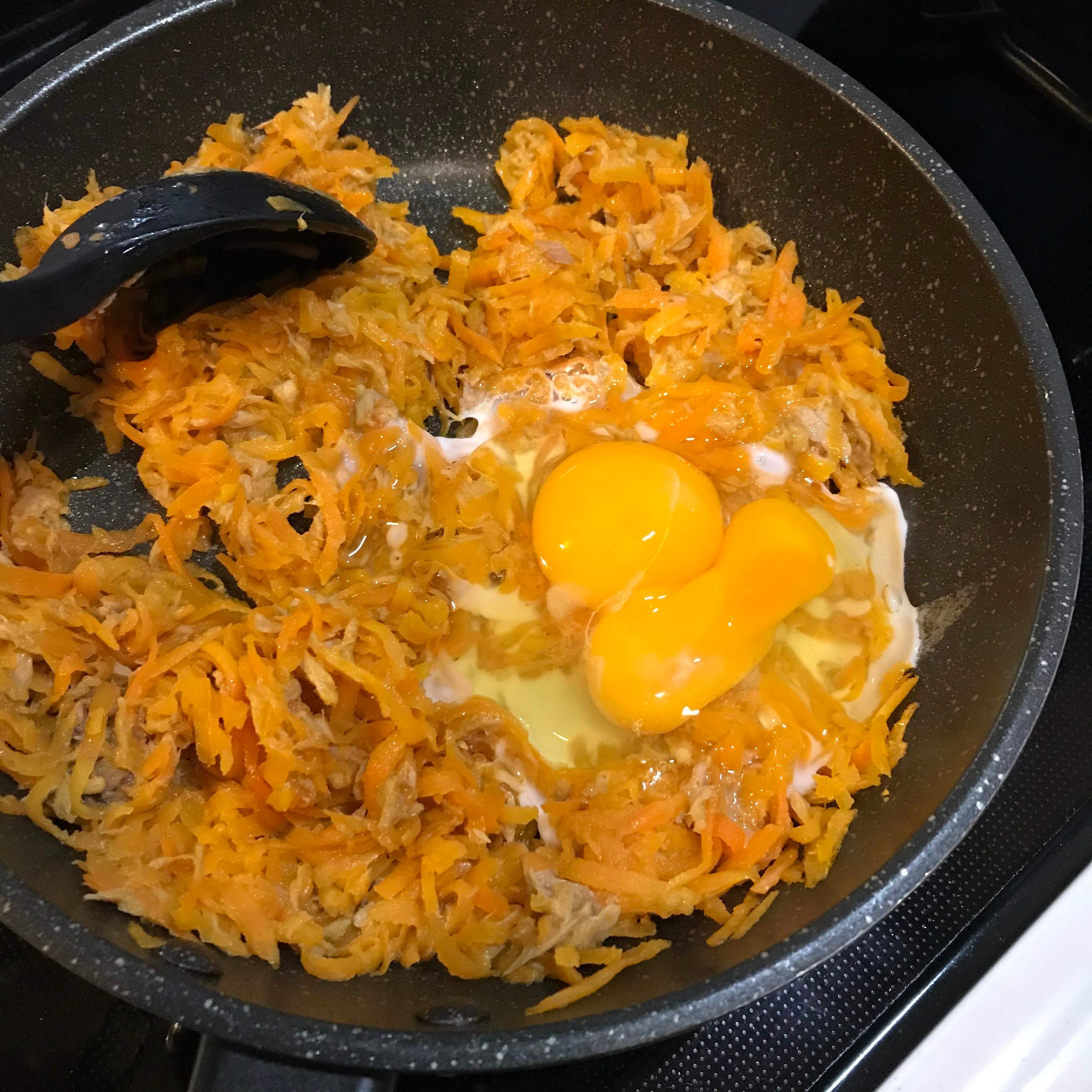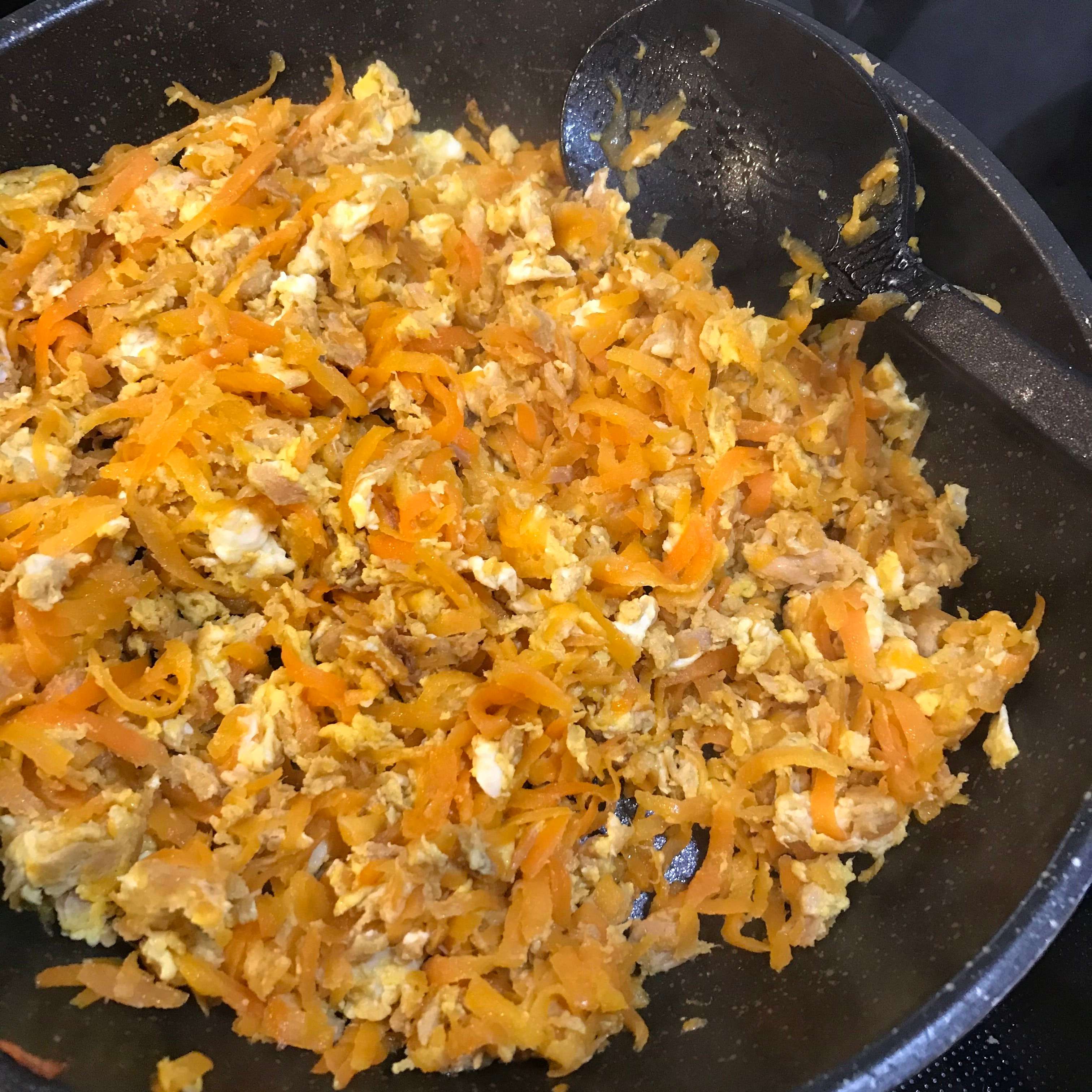 油不要で大丈夫ですが、人参の量が多いときはごま油をたすこともあります。この日の人参は野菜室にあった1本と半分を使い切りました。