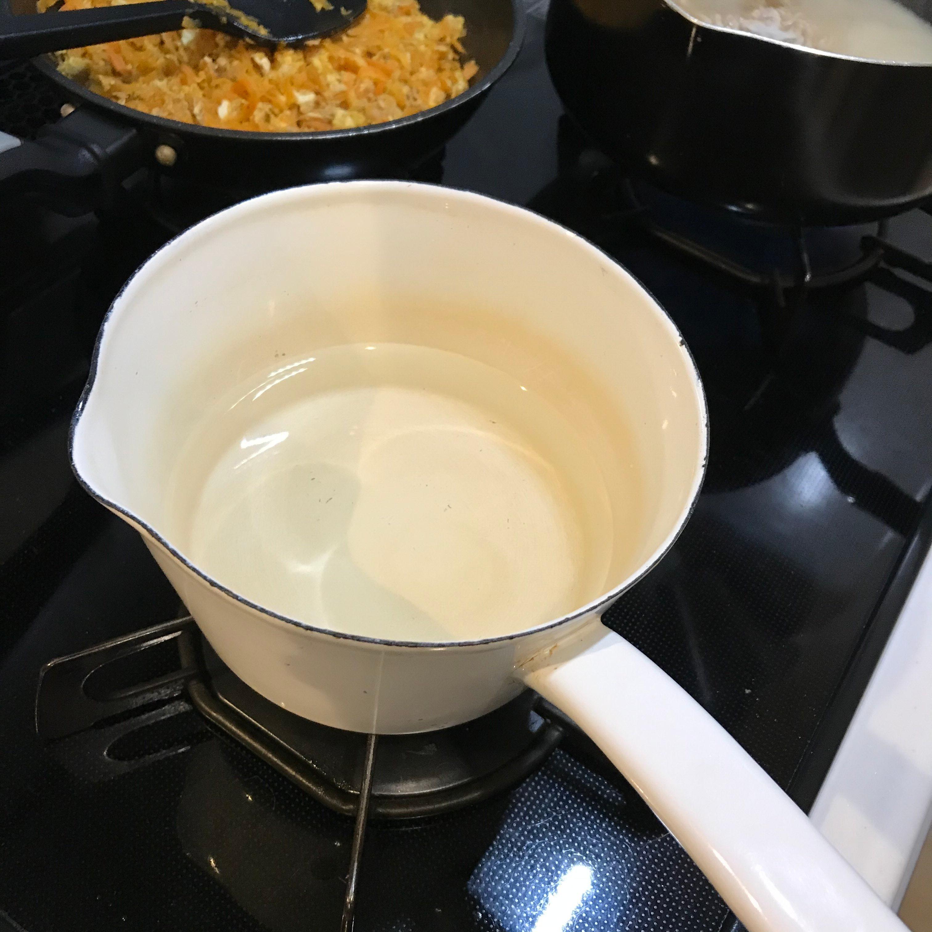 ▼小鍋に白だしをちょろりと入れて、出汁をとる手間を省略。