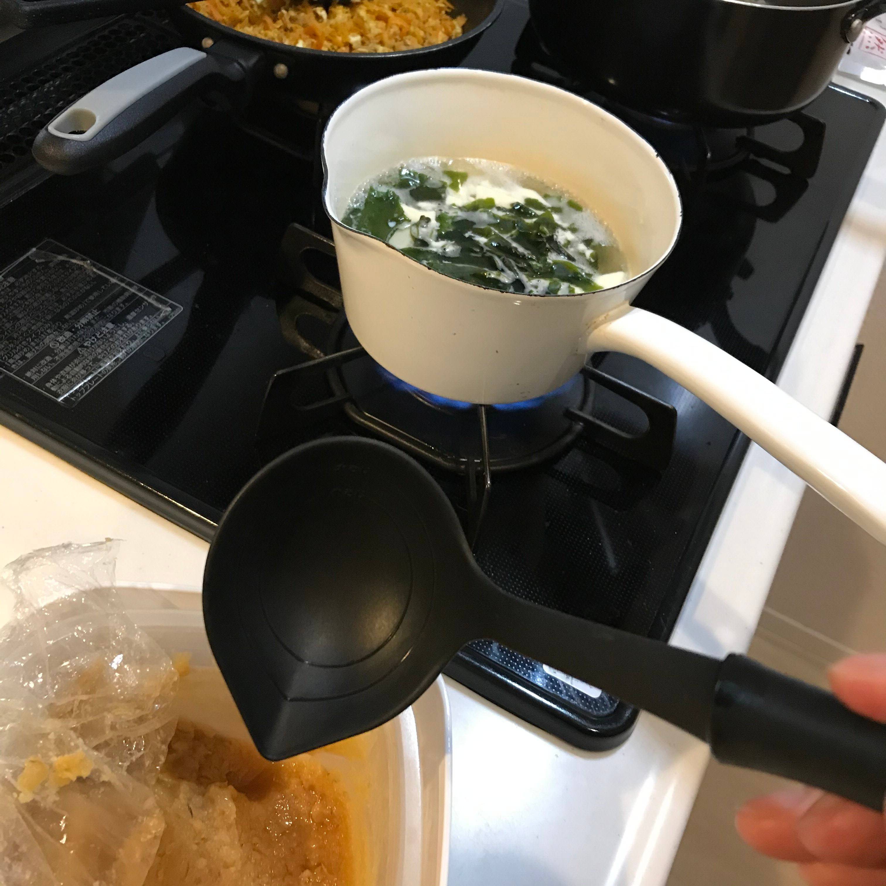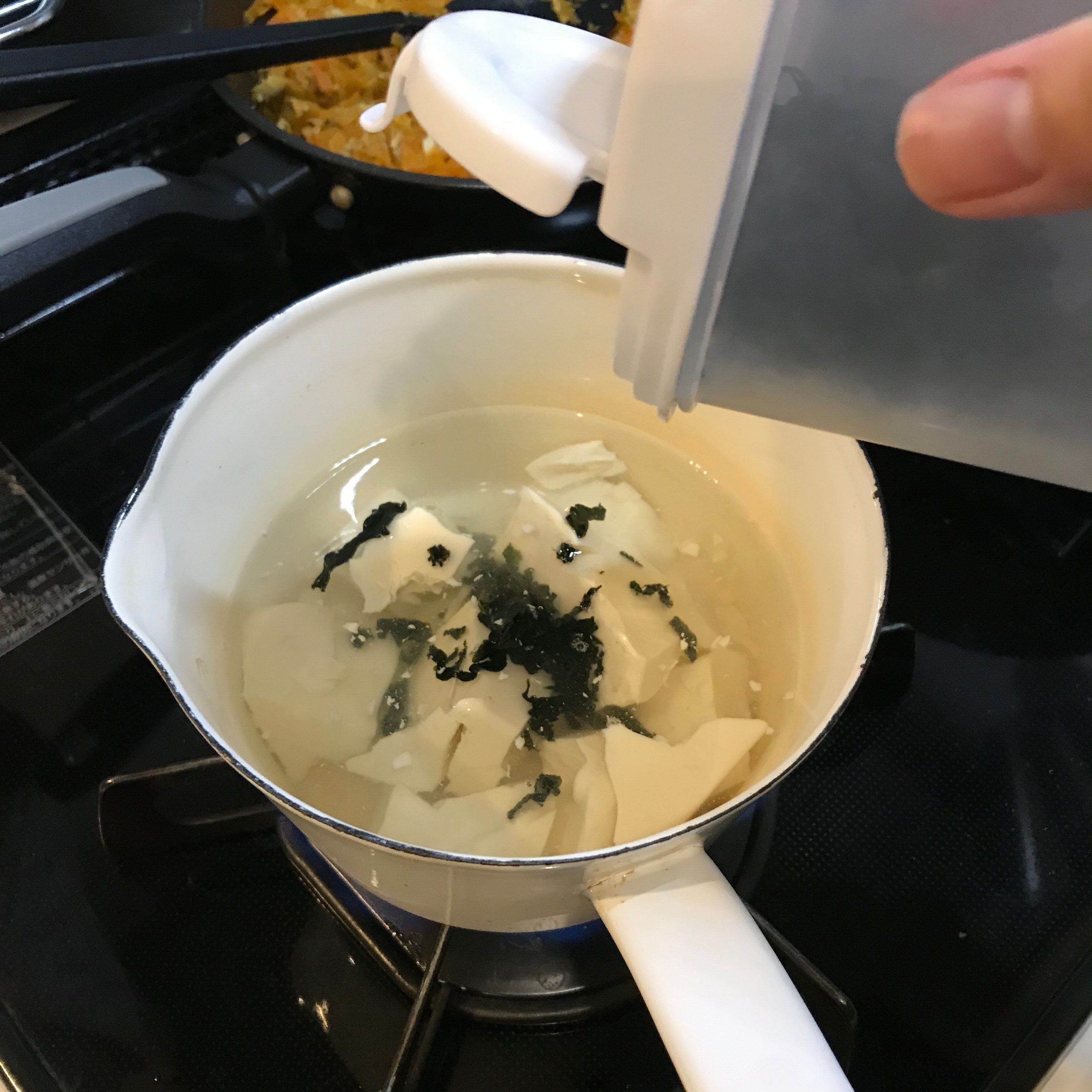 炒め物が終わって手が空いたので味噌汁にとりかかります。
