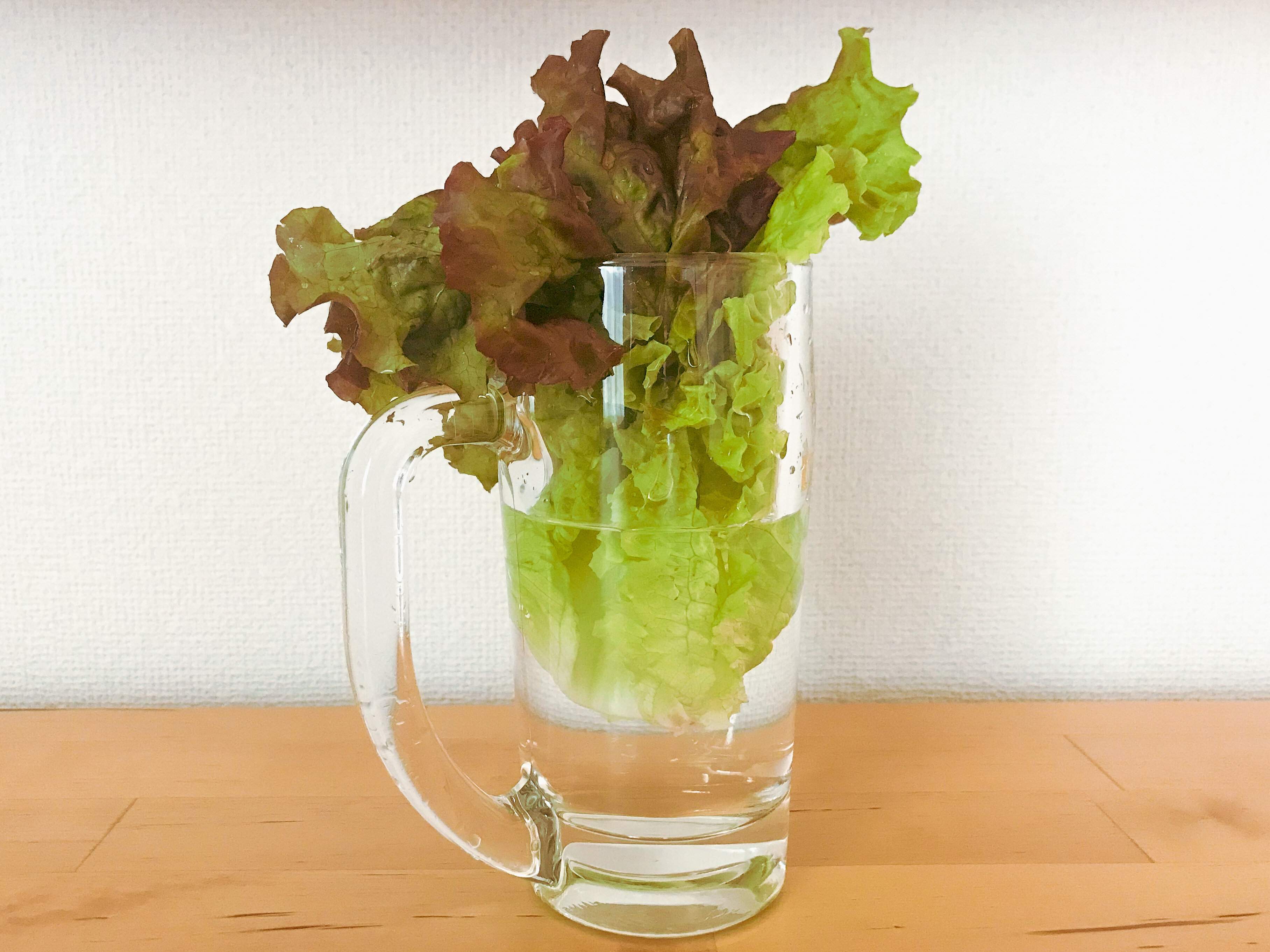 容器に水をいれ、レタスの根元を水に浸かる状態にします。