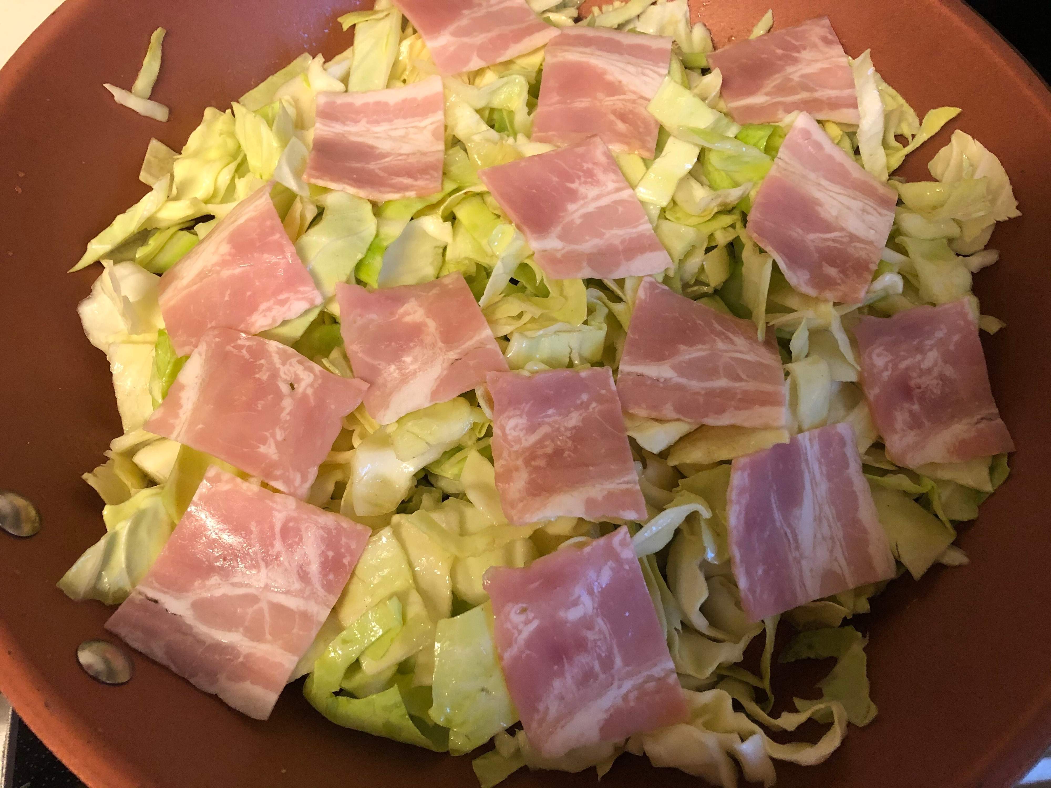 - 1.キャベツとベーコンを切る
