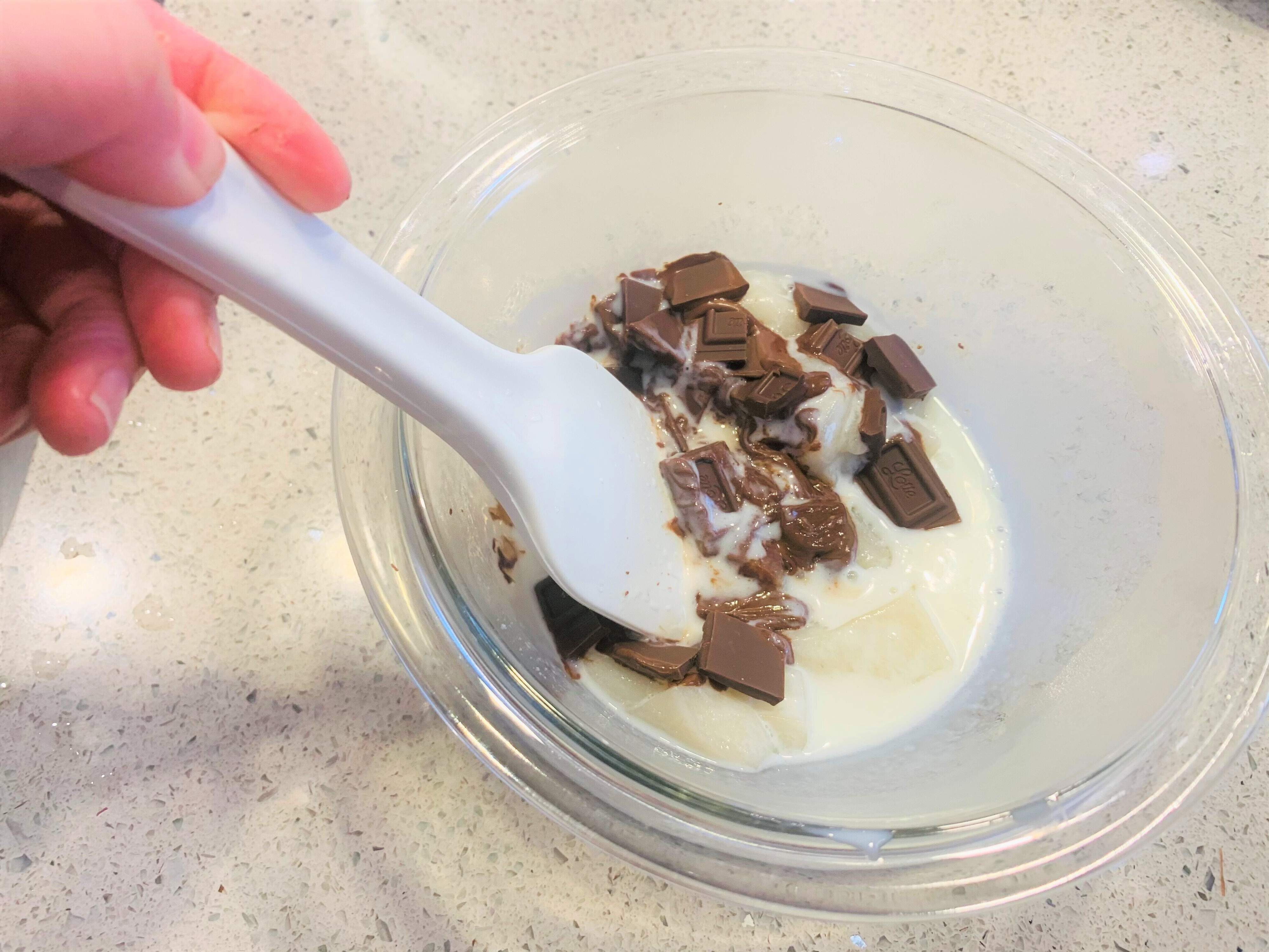 3.温かいうちに砕いた板チョコを入れて良く混ぜます。