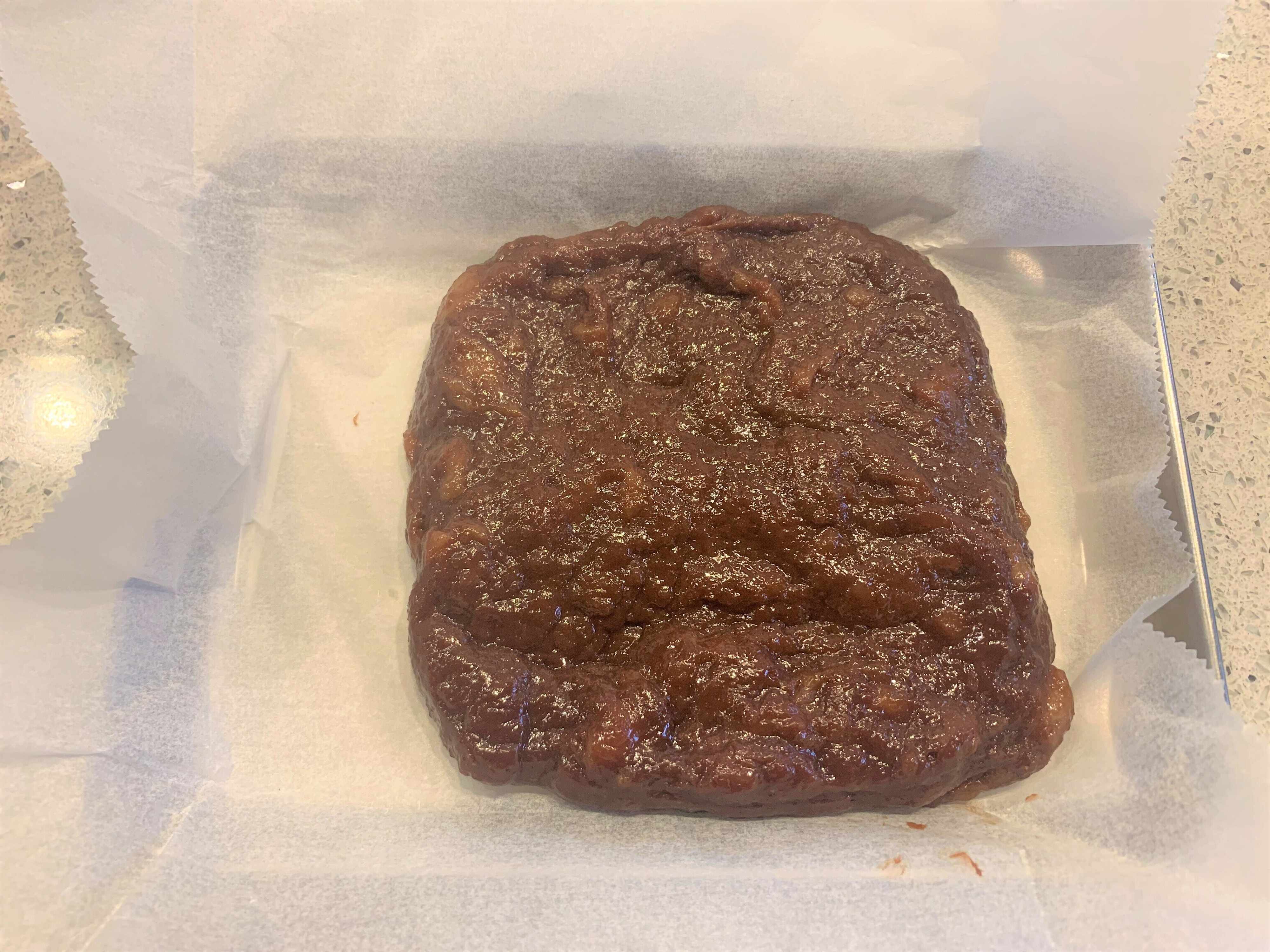 4.クッキングペーパーを敷いて、1~2センチくらいの厚さに広げて20分程で冷蔵庫で冷やします。急ぎの時は冷凍庫で10分でもOKです。