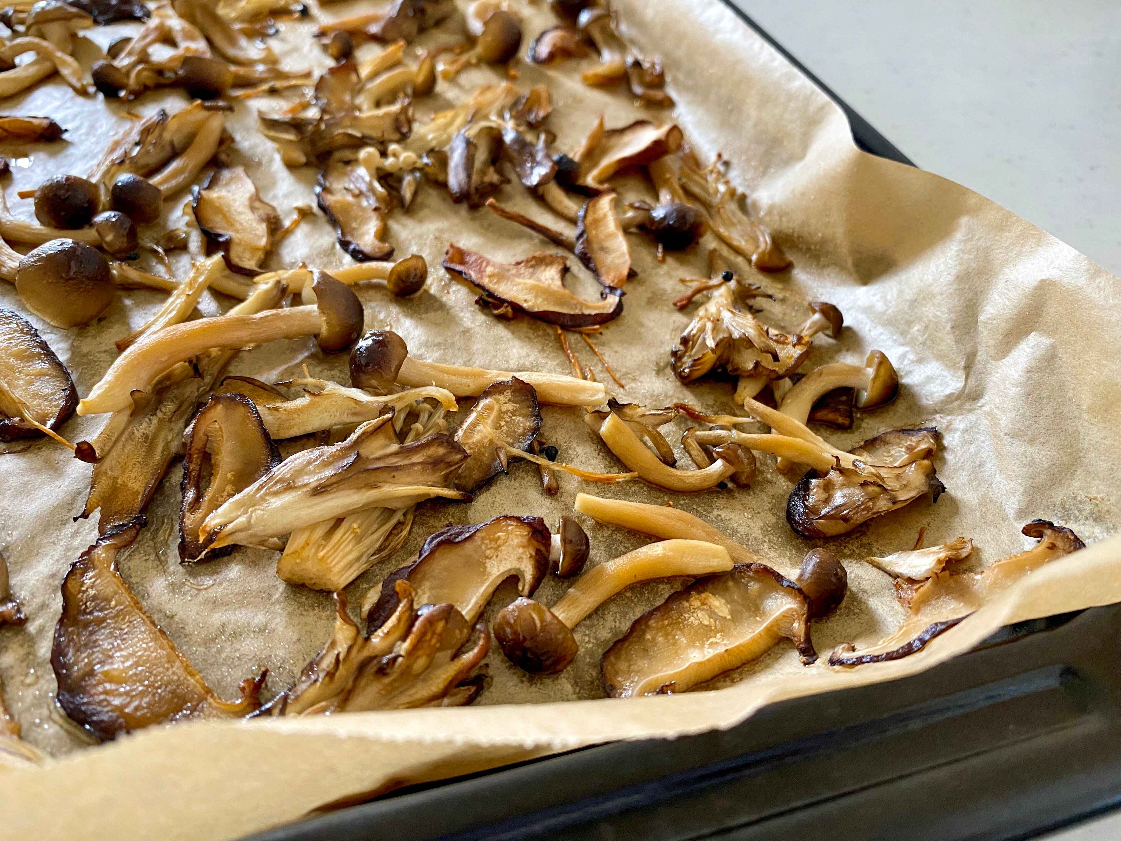 オーブンで焼いて水分を蒸発させることで、『焼ききのこ』をつくることができます。