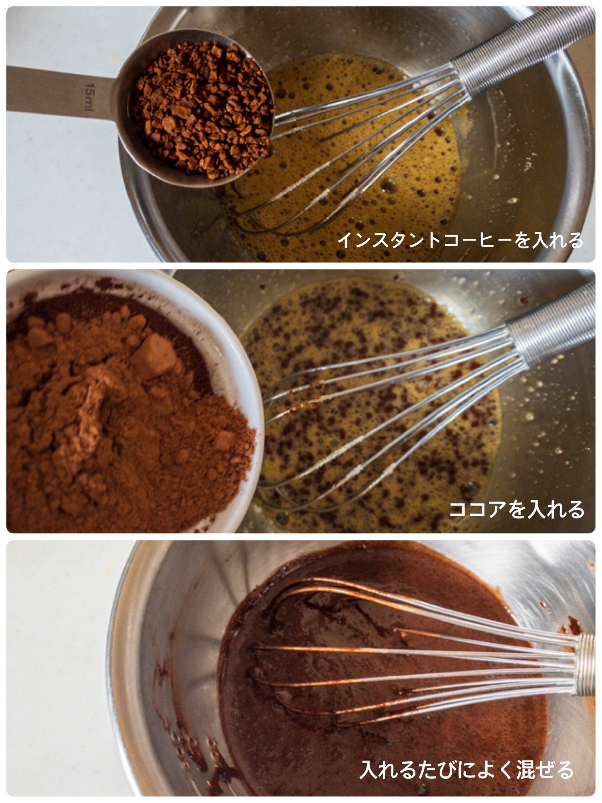 2.インスタントコーヒー、ココアを入れるたびによく混ぜます。