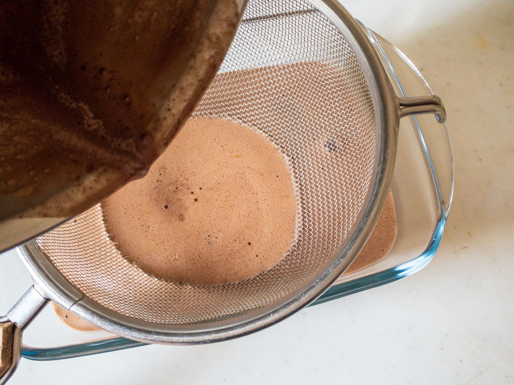 4.万能こし器でこしながら型に注ぎます。