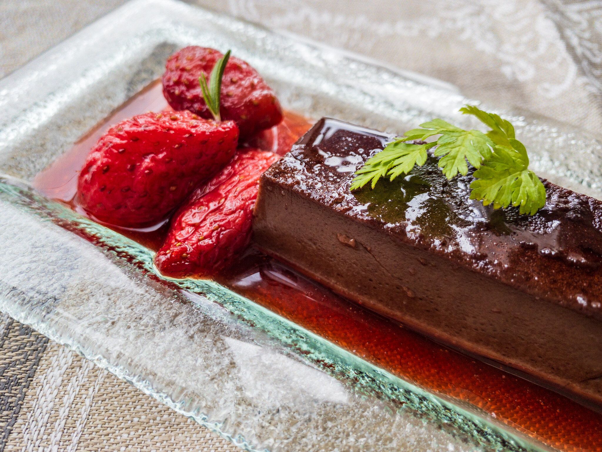 冷蔵庫に余っていたいちごに砂糖を加えてコトコト煮詰めていちごソースをつくり、ショコラプリンにかけてみました。チョコ×いちごもまた合いますね。王道のホイップ生クリームを添えても間違いなしなおいしさです。