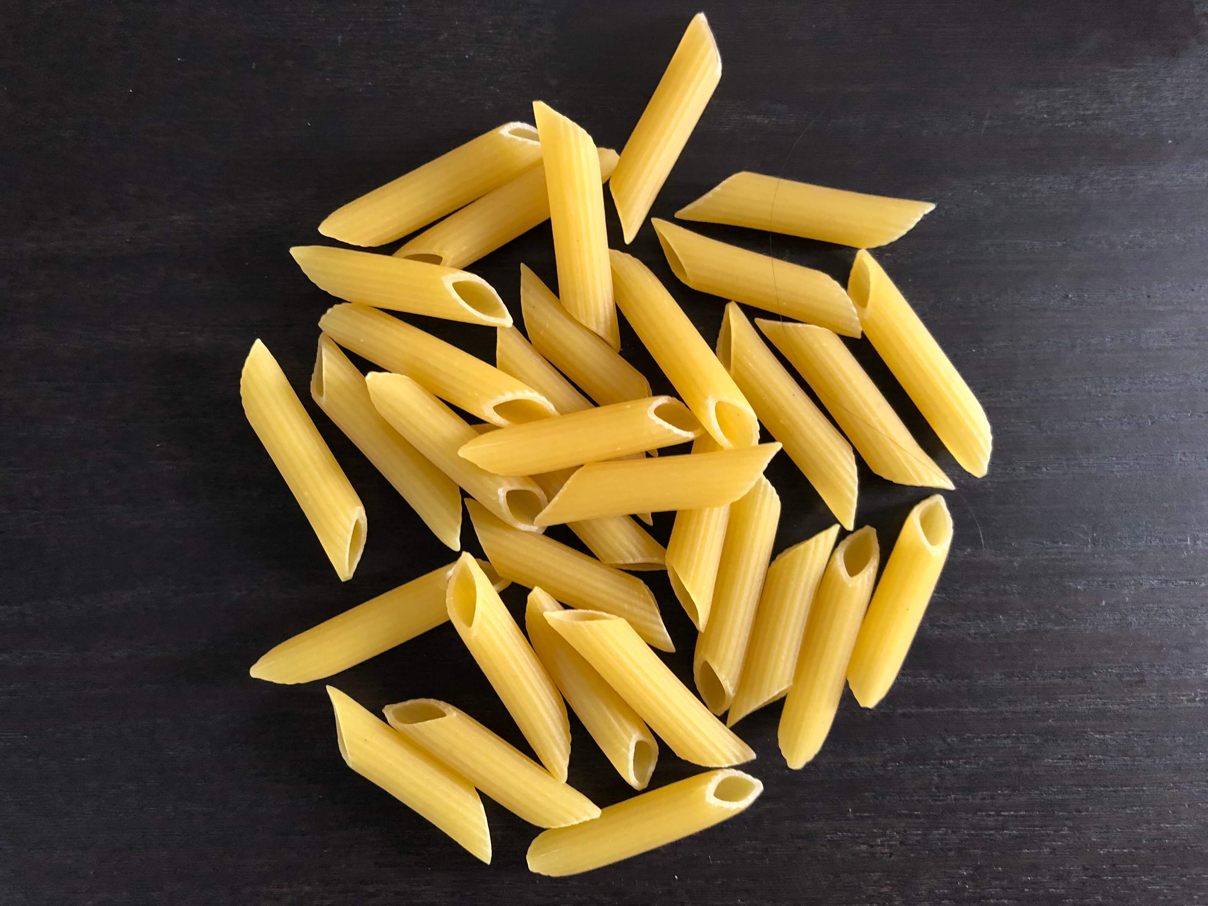 今回のレシピ、スパゲッティではなく、ペンネを使います。