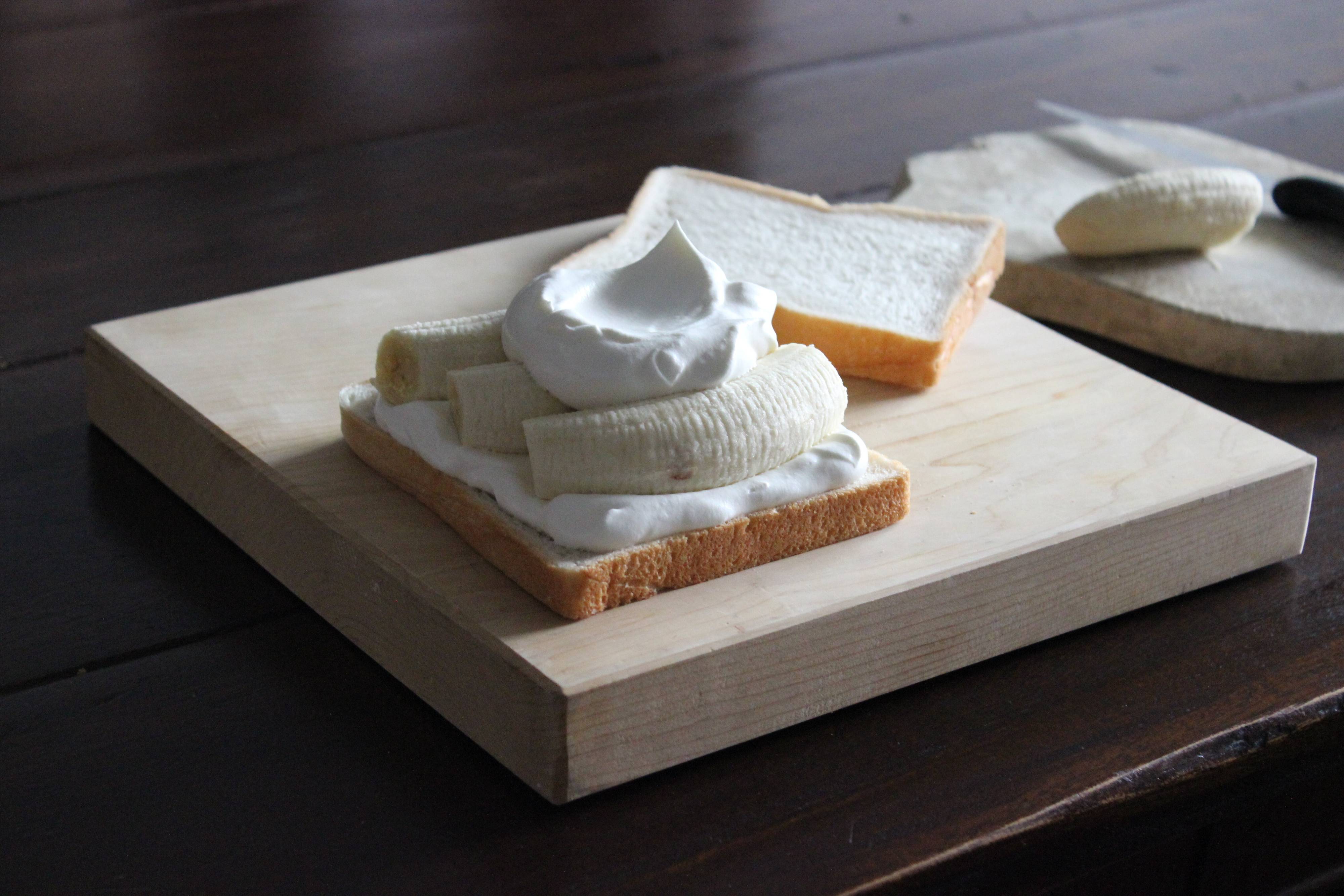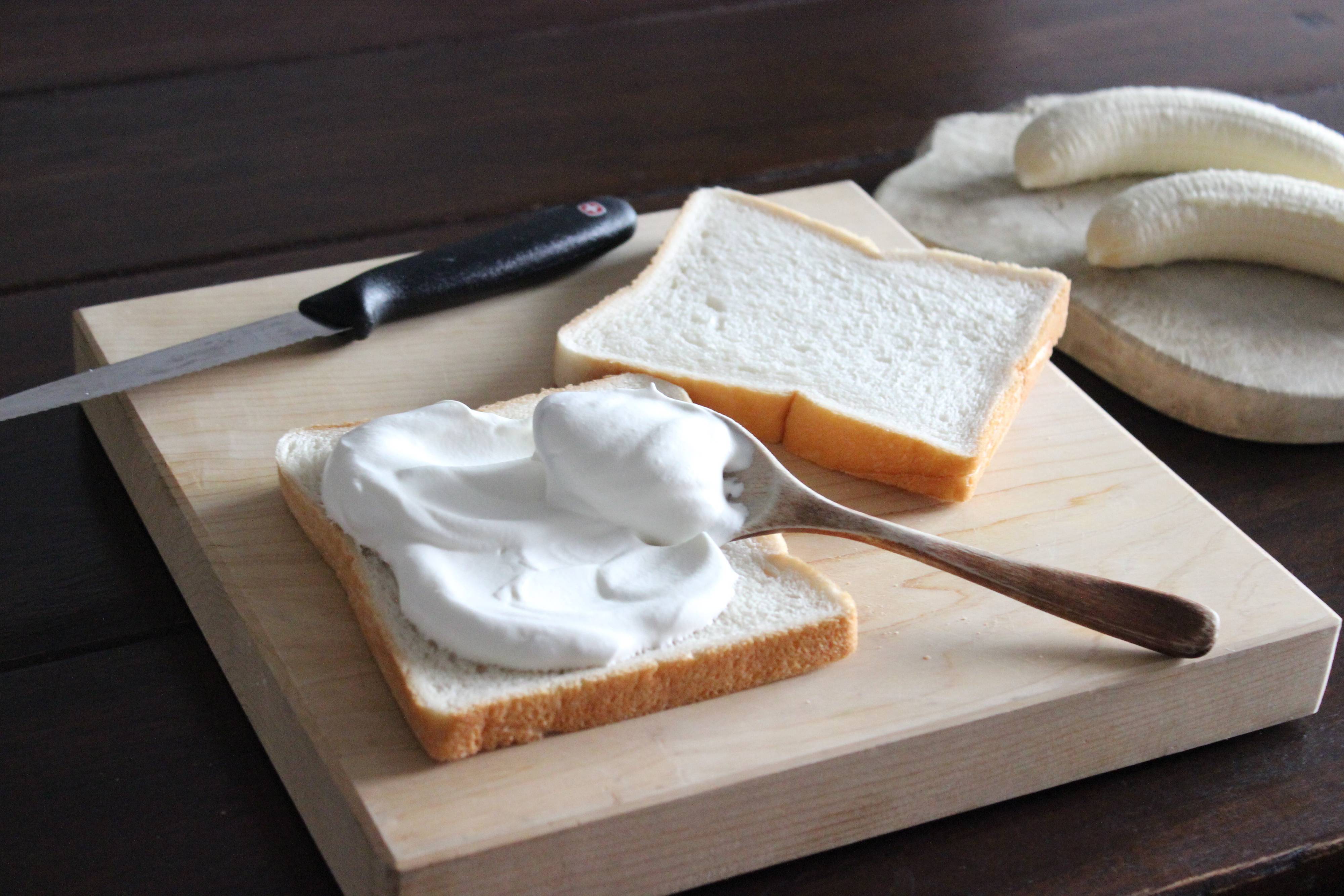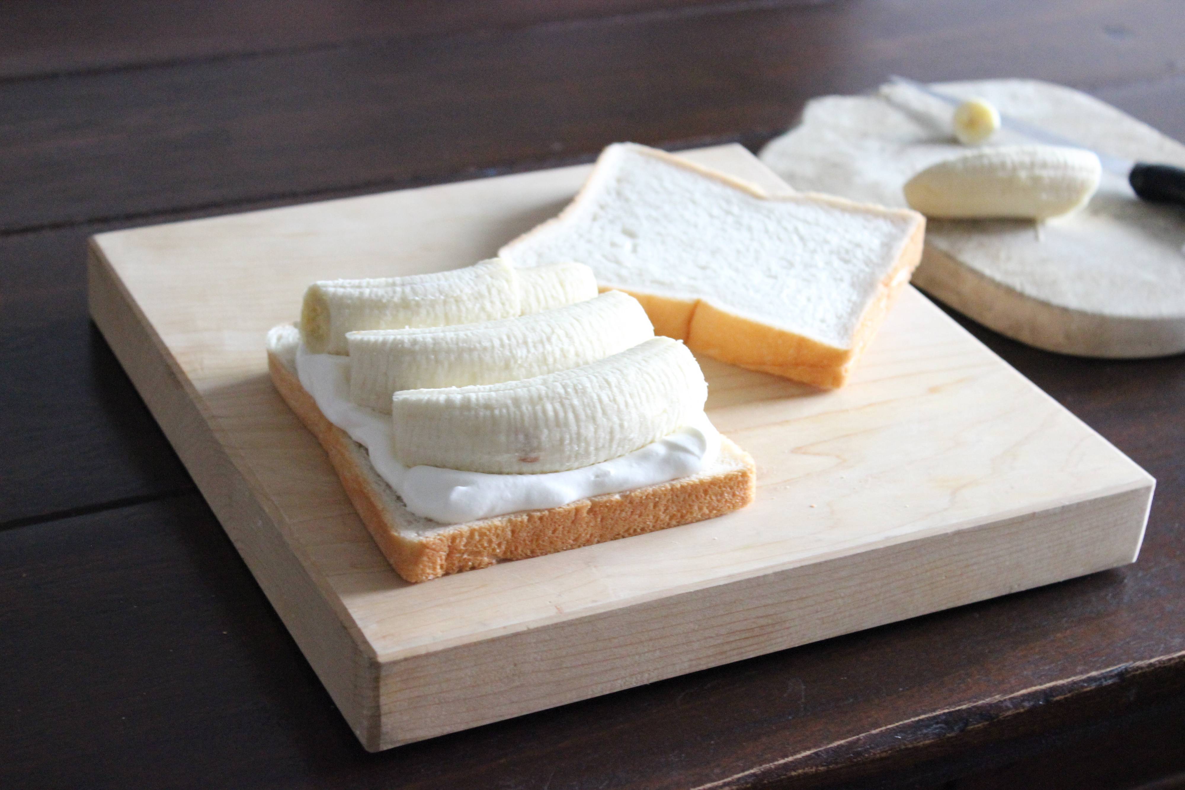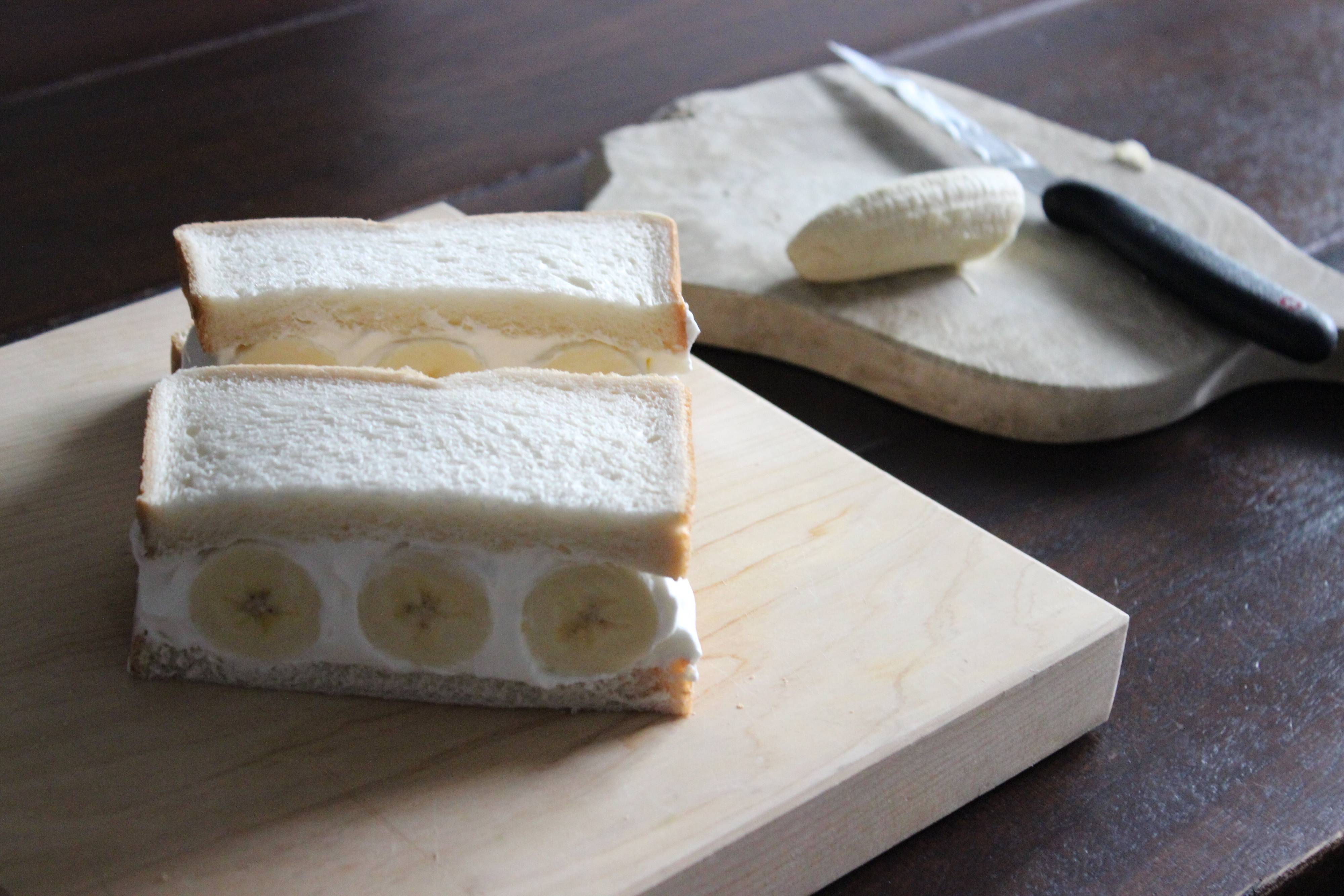 食パン、ホイップクリーム、バナナの3つで作るバナナクリームサンド。
