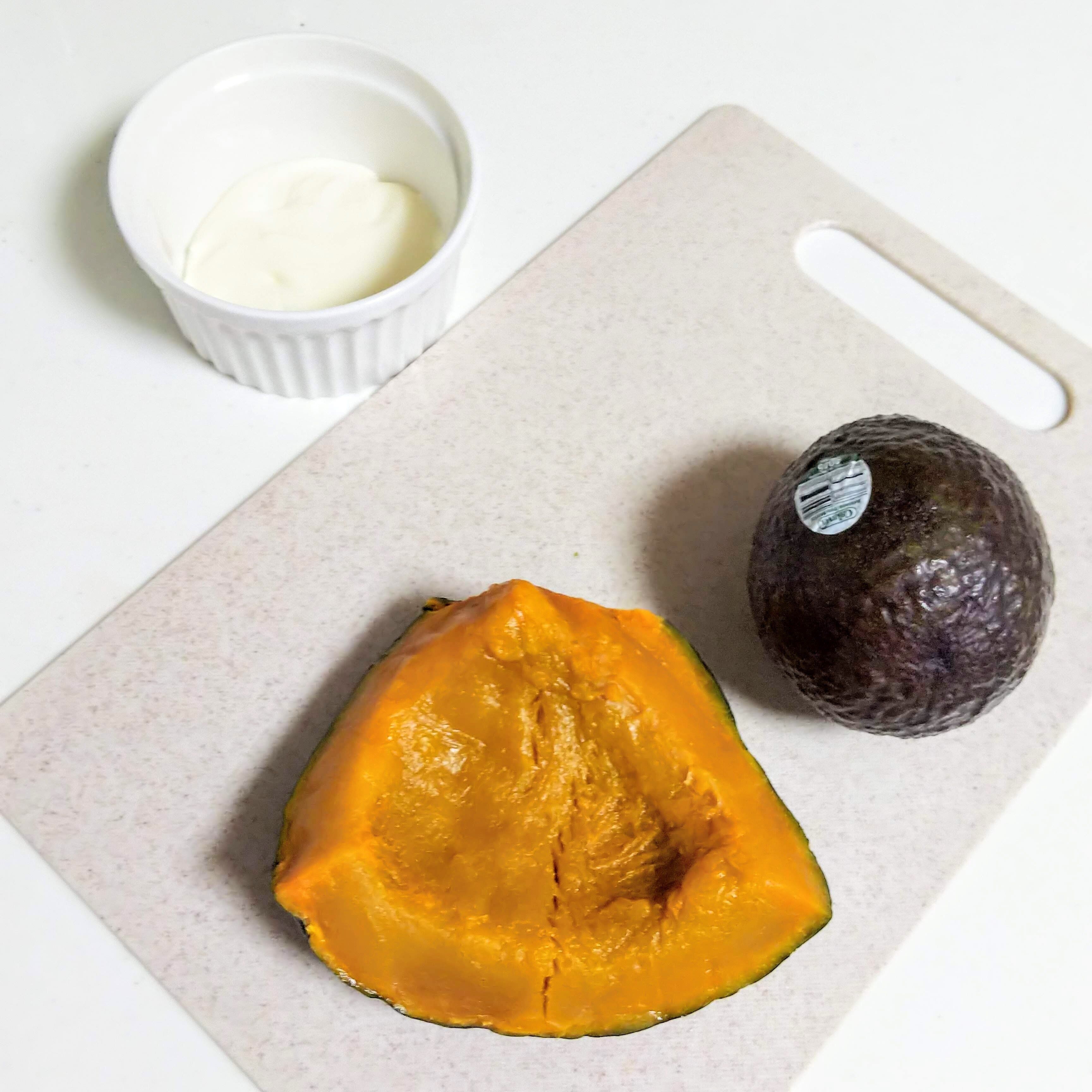 3 アボカド、かぼちゃは一口大にカットする。
