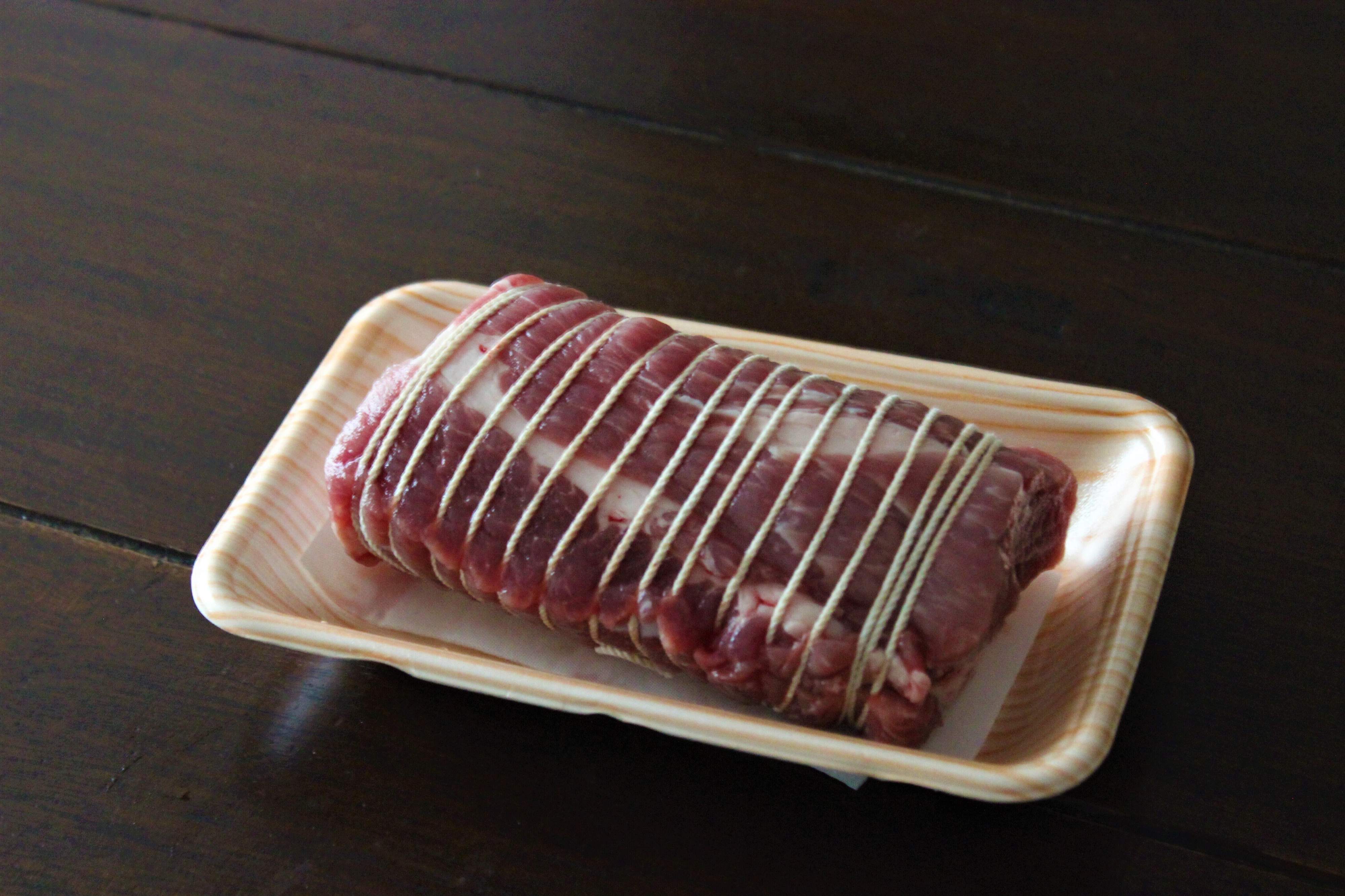 1.豚肩ロースは形が崩れないようタコひもで形を整える。