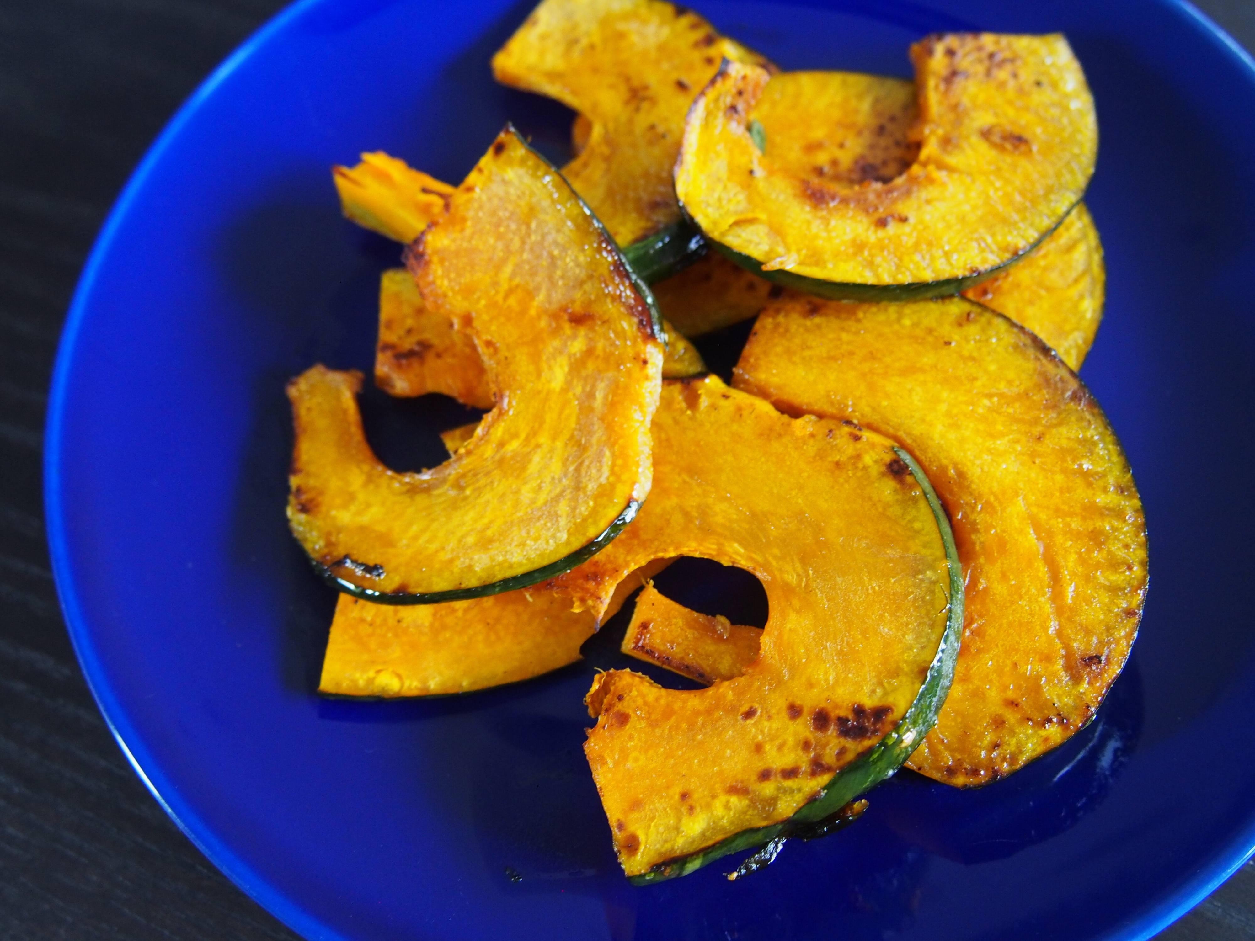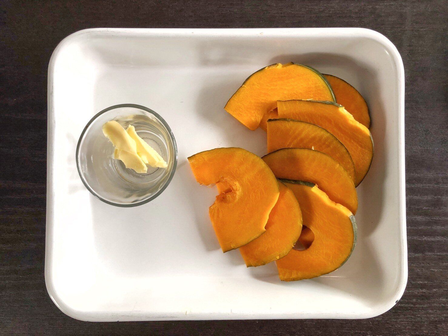 1つ目はかぼちゃのソテーです。薄切りで売られているかぼちゃをバターで焼くだけですが、バターの塩気とかぼちゃの甘みが相まって、最高においしい1品の完成です♪
