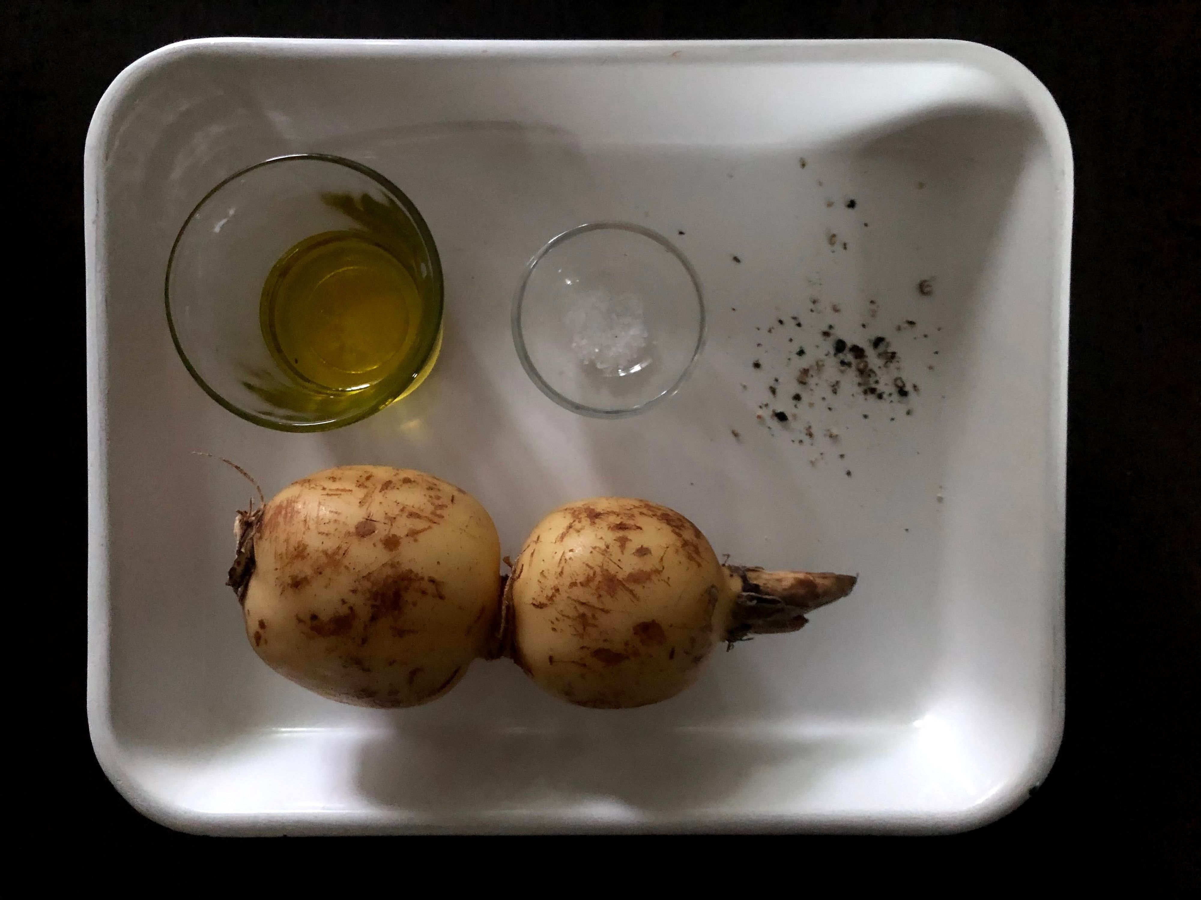 これは、もはやオーブンで焼くだけ、調味料もいらない!レシピと呼んでよいのかも怪しい……さつまいものお料理です。