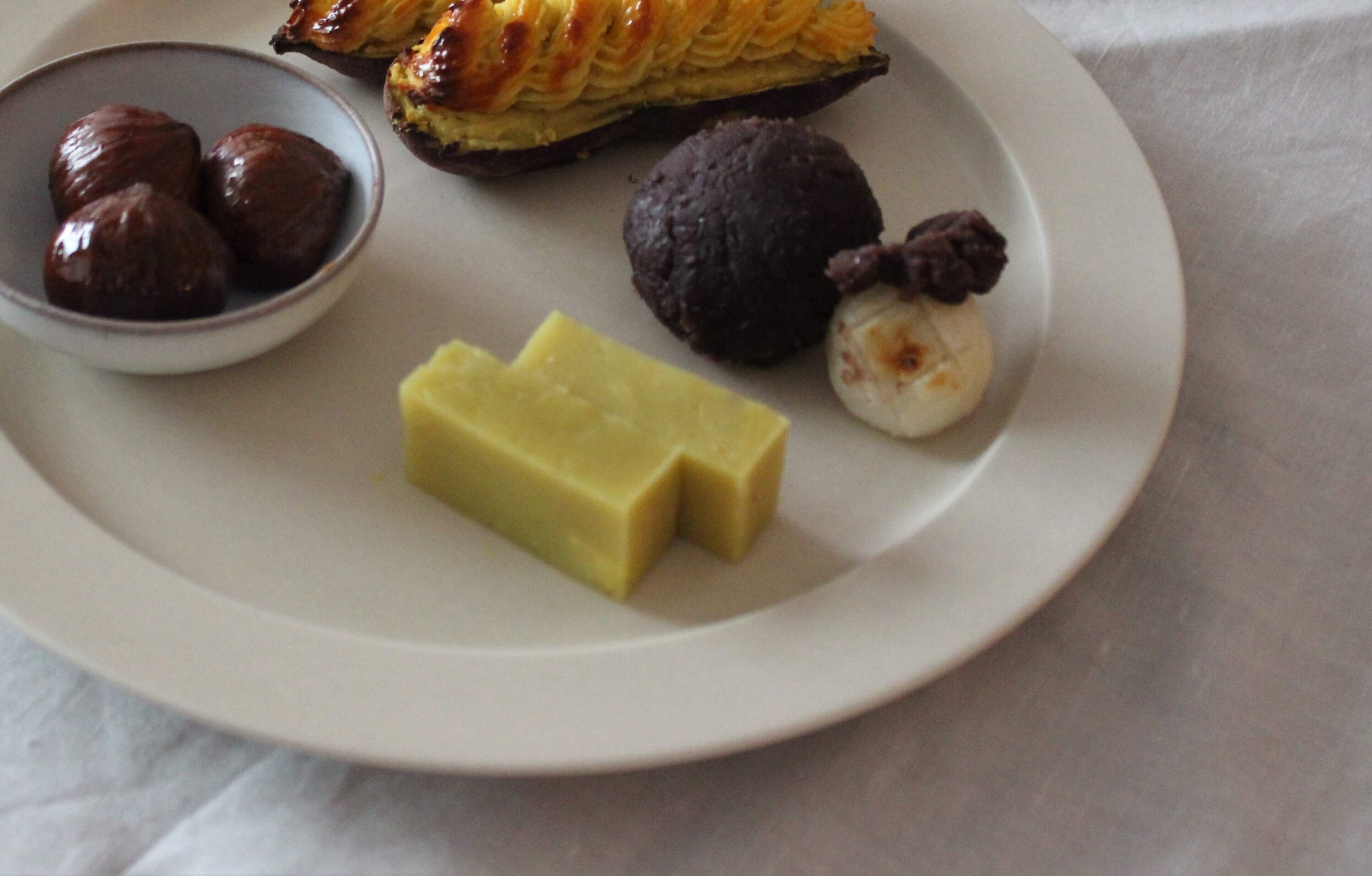 芋羊羹は、きっと寒天で固めたりするのだろうと思っていたのですが、じつはさつまいもだけでつくることができるんです。
