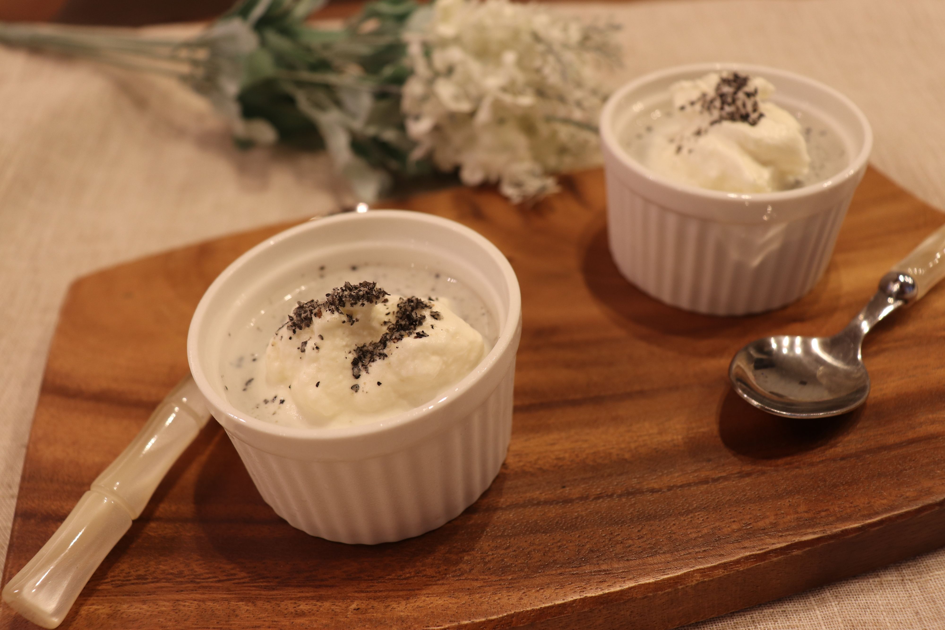 とっても簡単なのにカフェで食べているような気分になれちゃう黒ゴマのブランマンジェのレシピをご紹介します。冷蔵庫で固める時間を除けば、こちらも作業時間は3分ほど!びっくりするほど簡単につくれちゃうとろーりおいしいスイーツです。