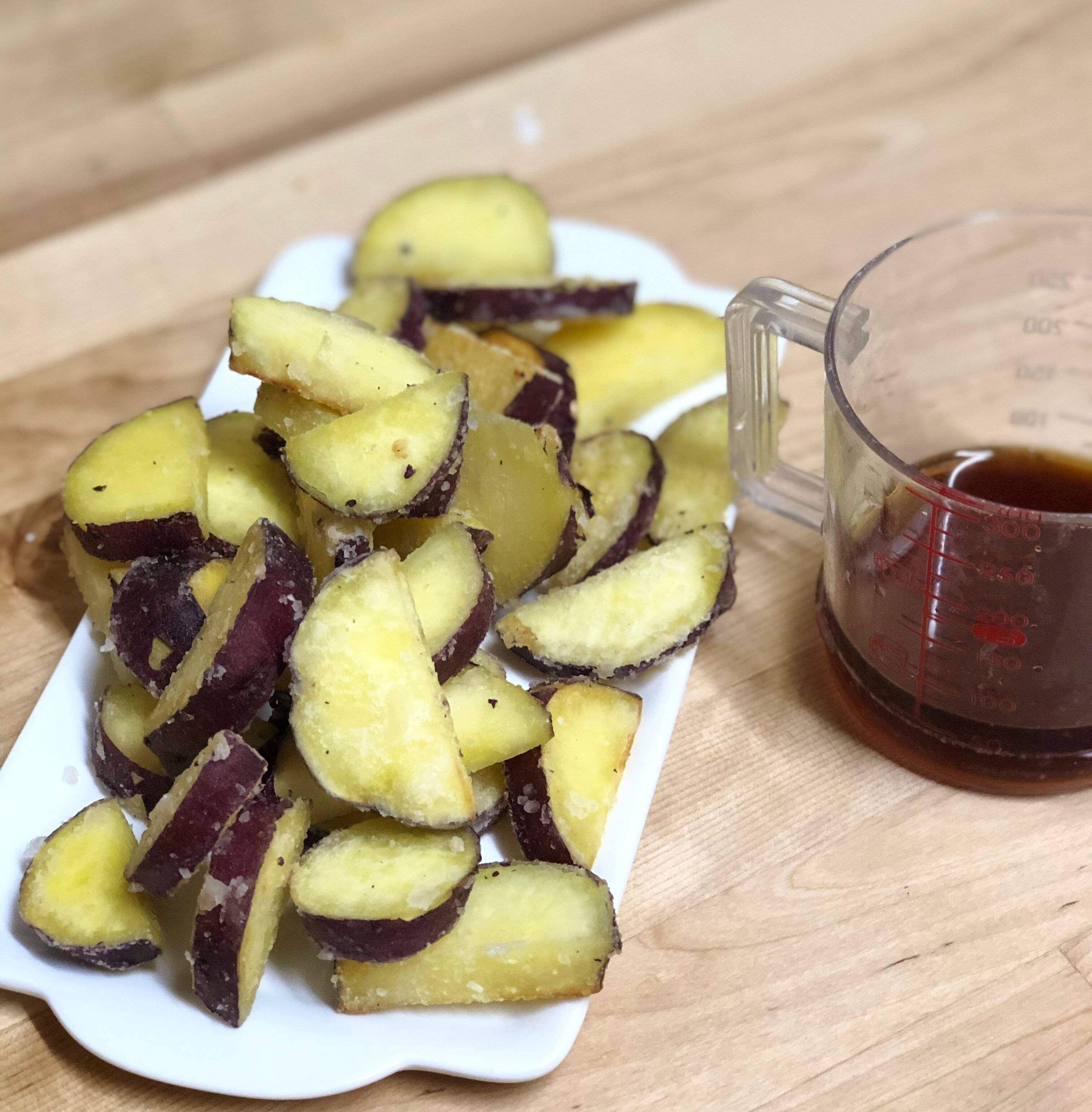 8)揚げ焼きした薩摩芋をバットかお皿に一旦あげます
