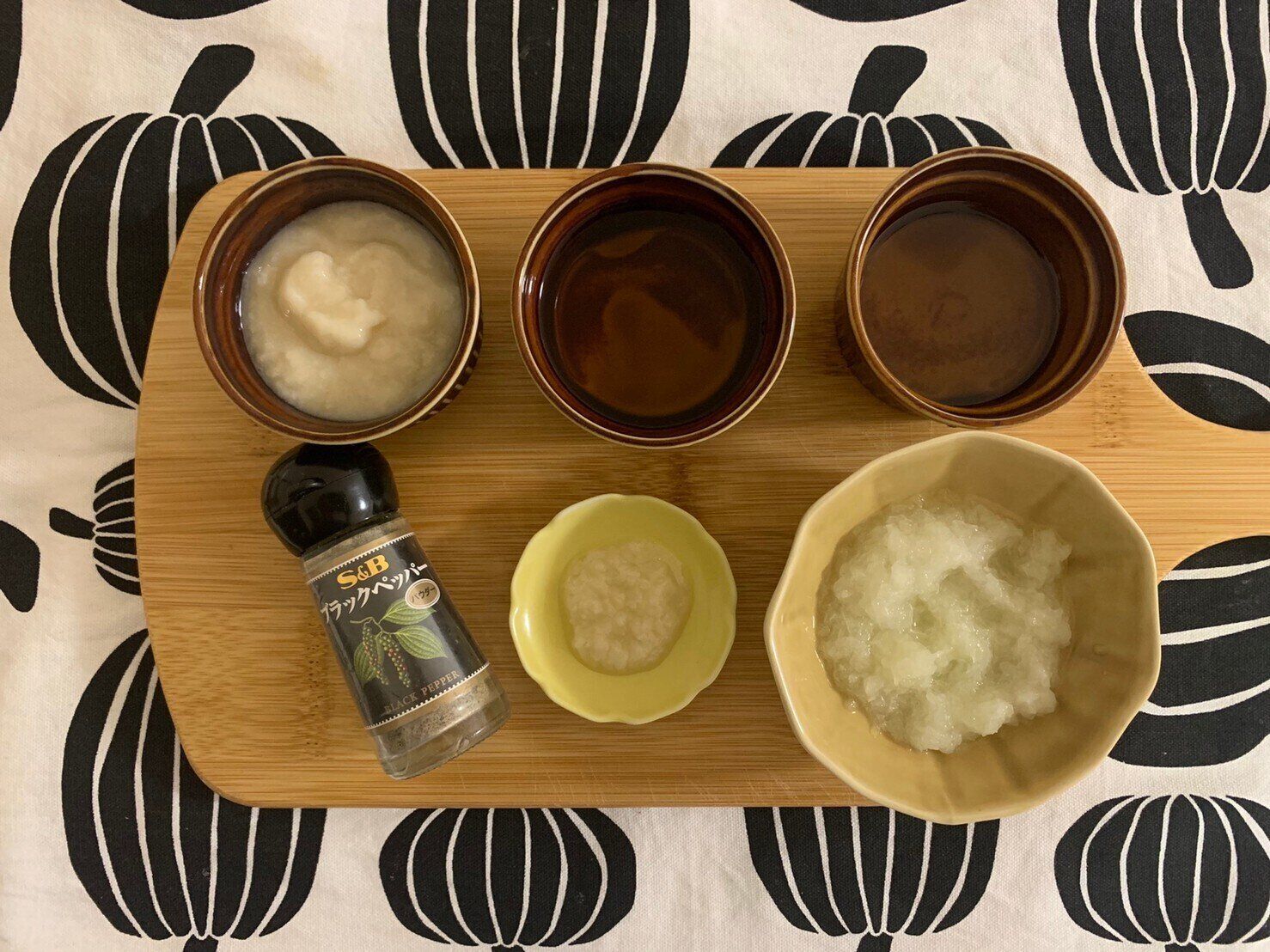 (お好みで)ニンニクすりおろし、レモン汁、ニンジンすりおろし