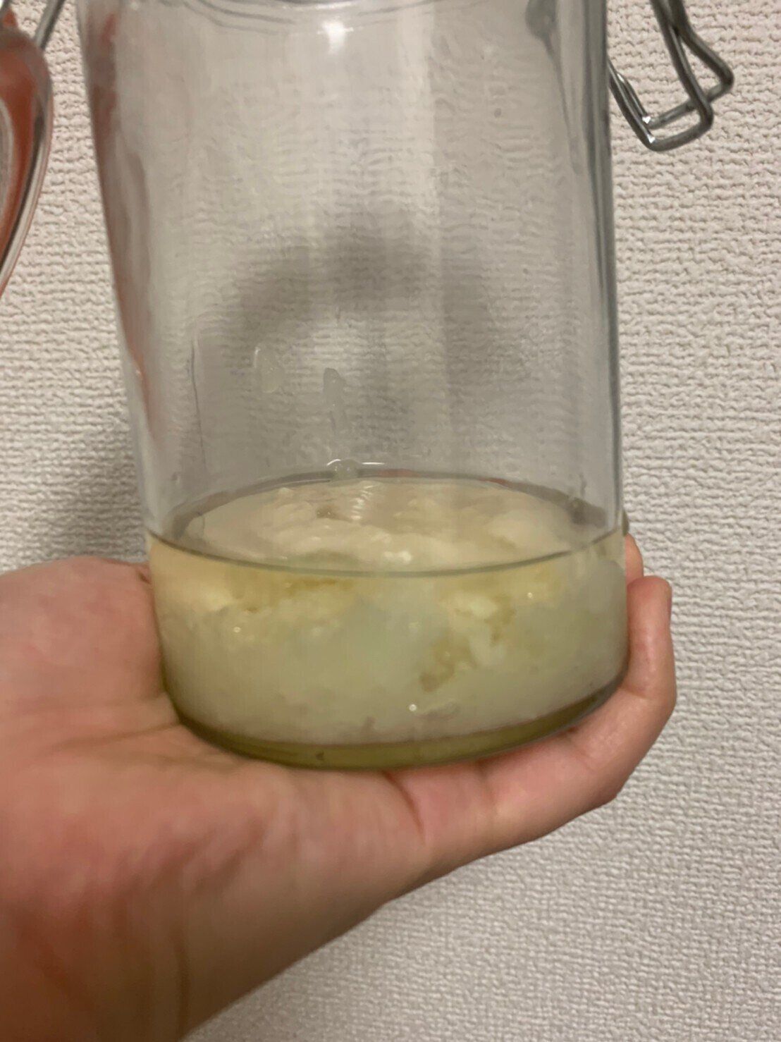 甘酒(濃縮)からもち米を抜いて、乾燥米麹100gとお水100gでつくったもの。