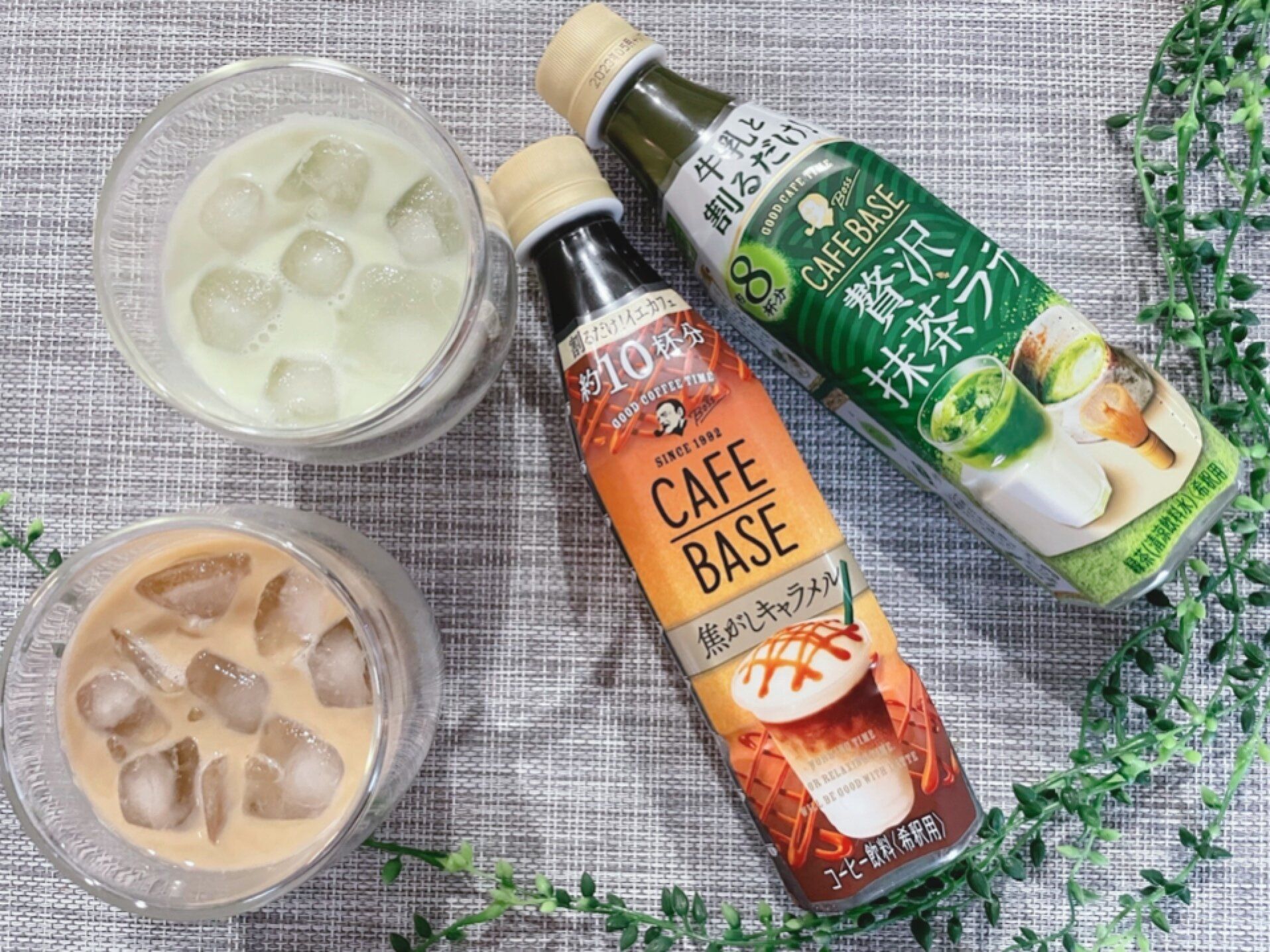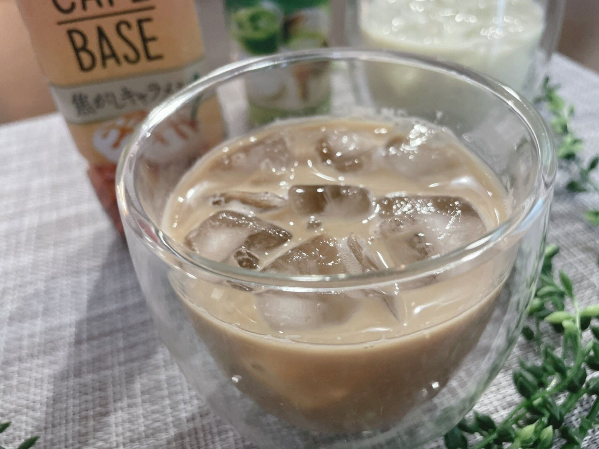 カフェベースを水か牛乳で割るだけの簡単おうちカフェがすぐでき、アイスや生クリームをトッピングすれば、自由自在にカスタマイズもできちゃうCAFE BACE。