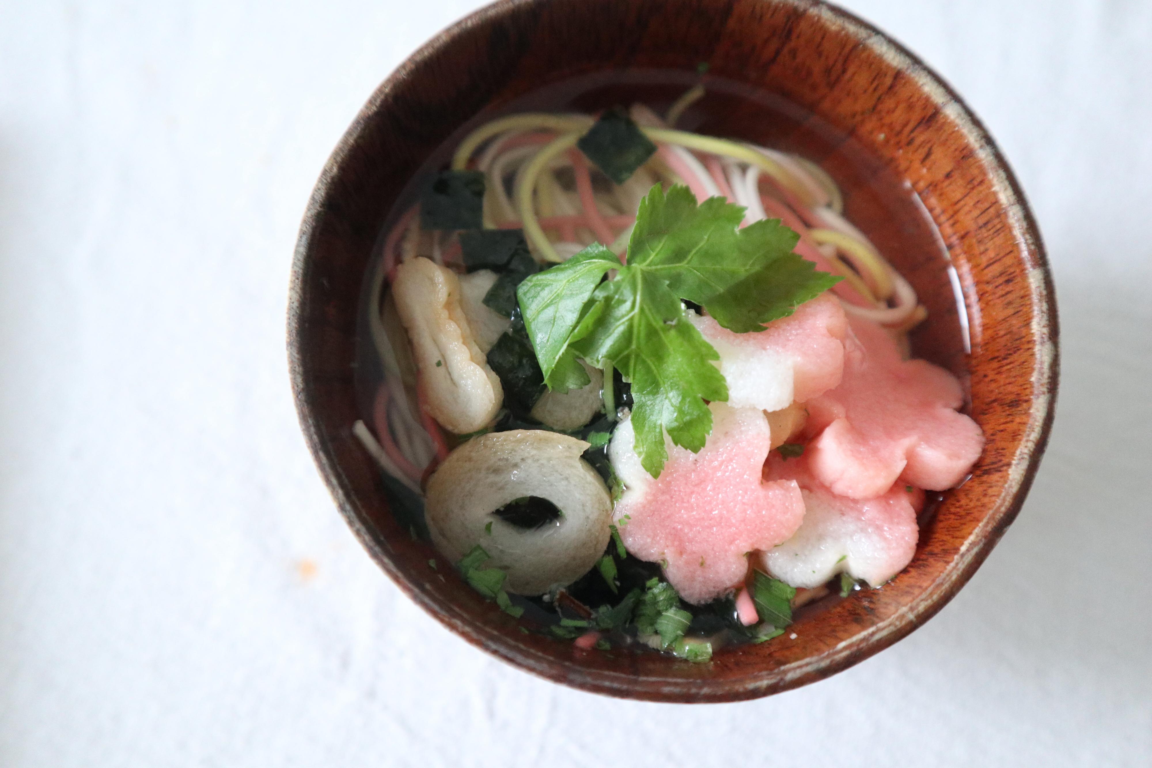 お吸い物に素麺を入れるだけ。お麩や三つ葉を添えて。カラダにしみわたる優しい味わいです。