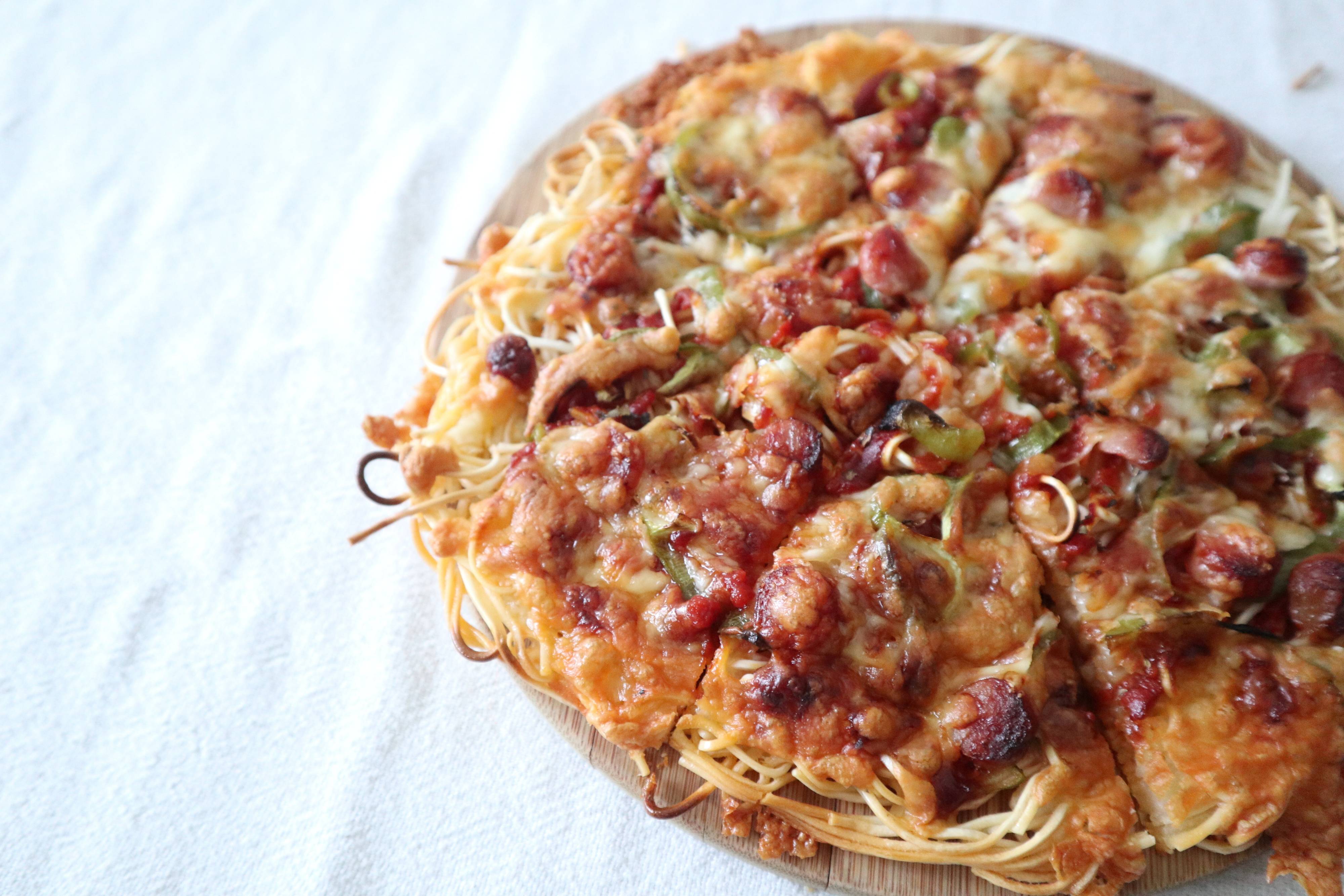 茹でたそうめんをクッキングシートの上で薄く円形状に広げます。ケシャップをぬり、お好みの具材(玉ねぎ、ウィンナー、ピーマンなど)をのせて、チーズをちらします。お好みでオレガノやバジルを散らすのもおススメ!