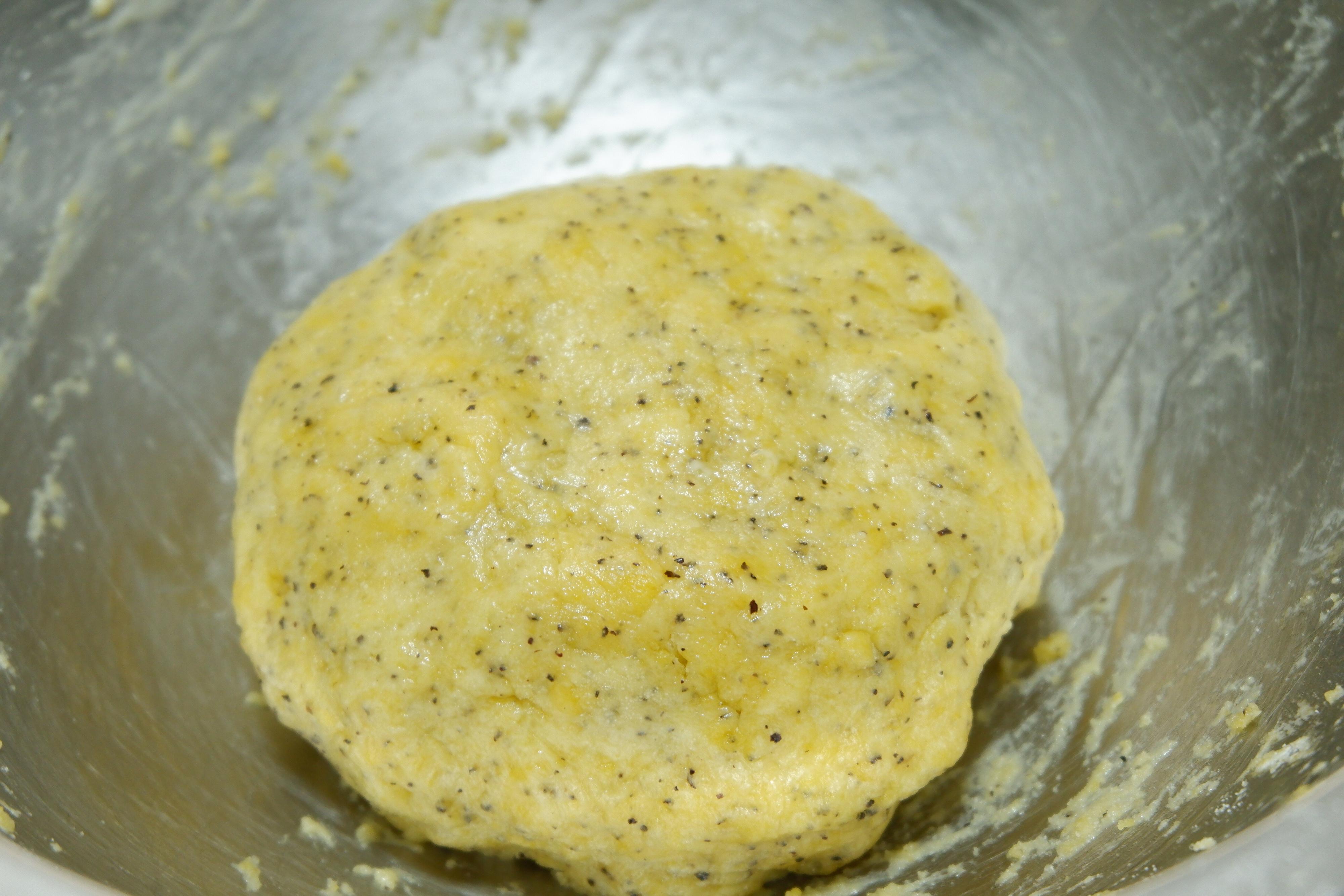 2.ボウルに卵・油・砂糖を入れ、混ぜ合わせ、薄力粉を加えひとまとめにし、冷蔵庫で15分休ませる。