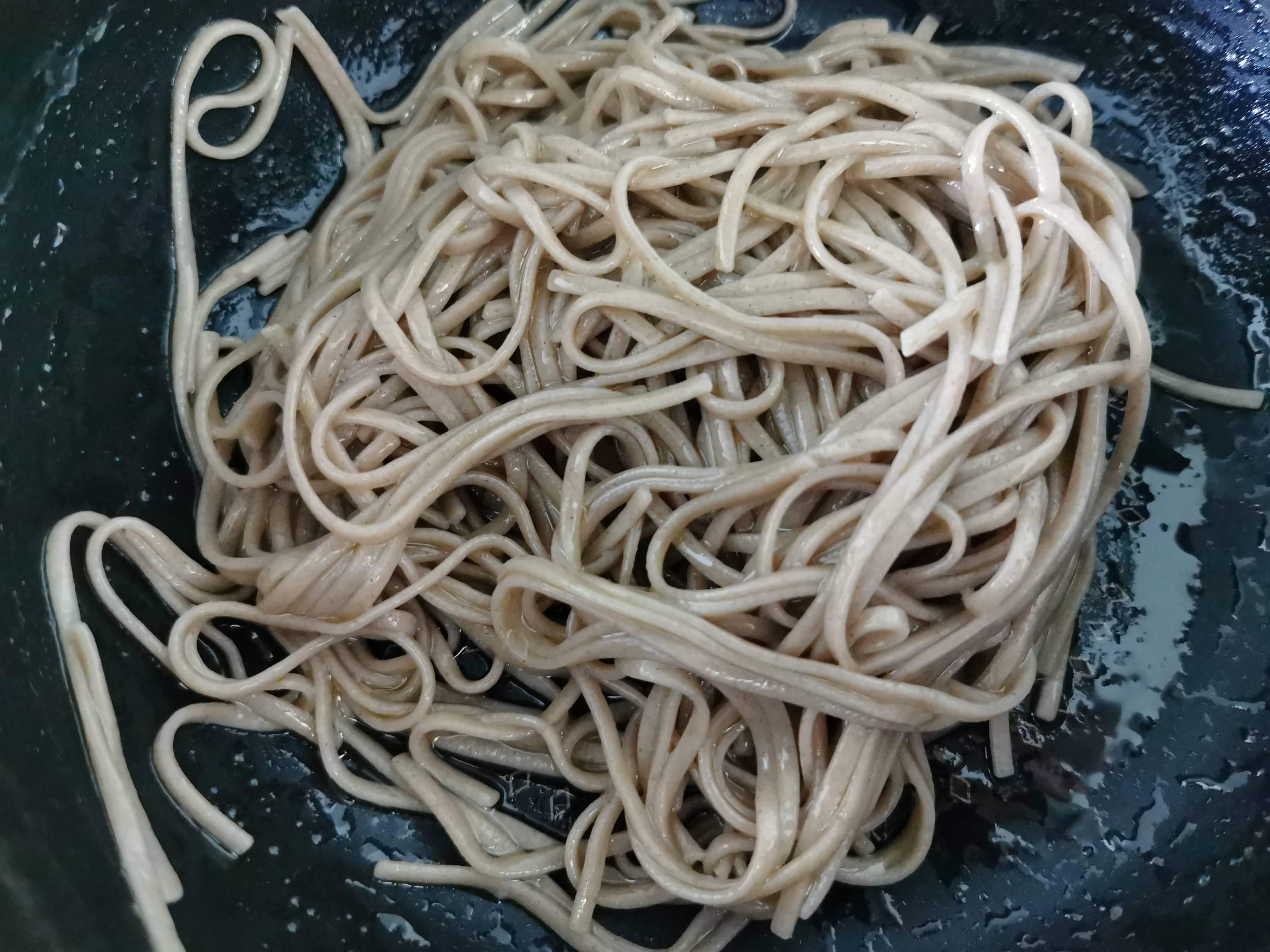 (1)お蕎麦をゆでて、湯切りをし、
