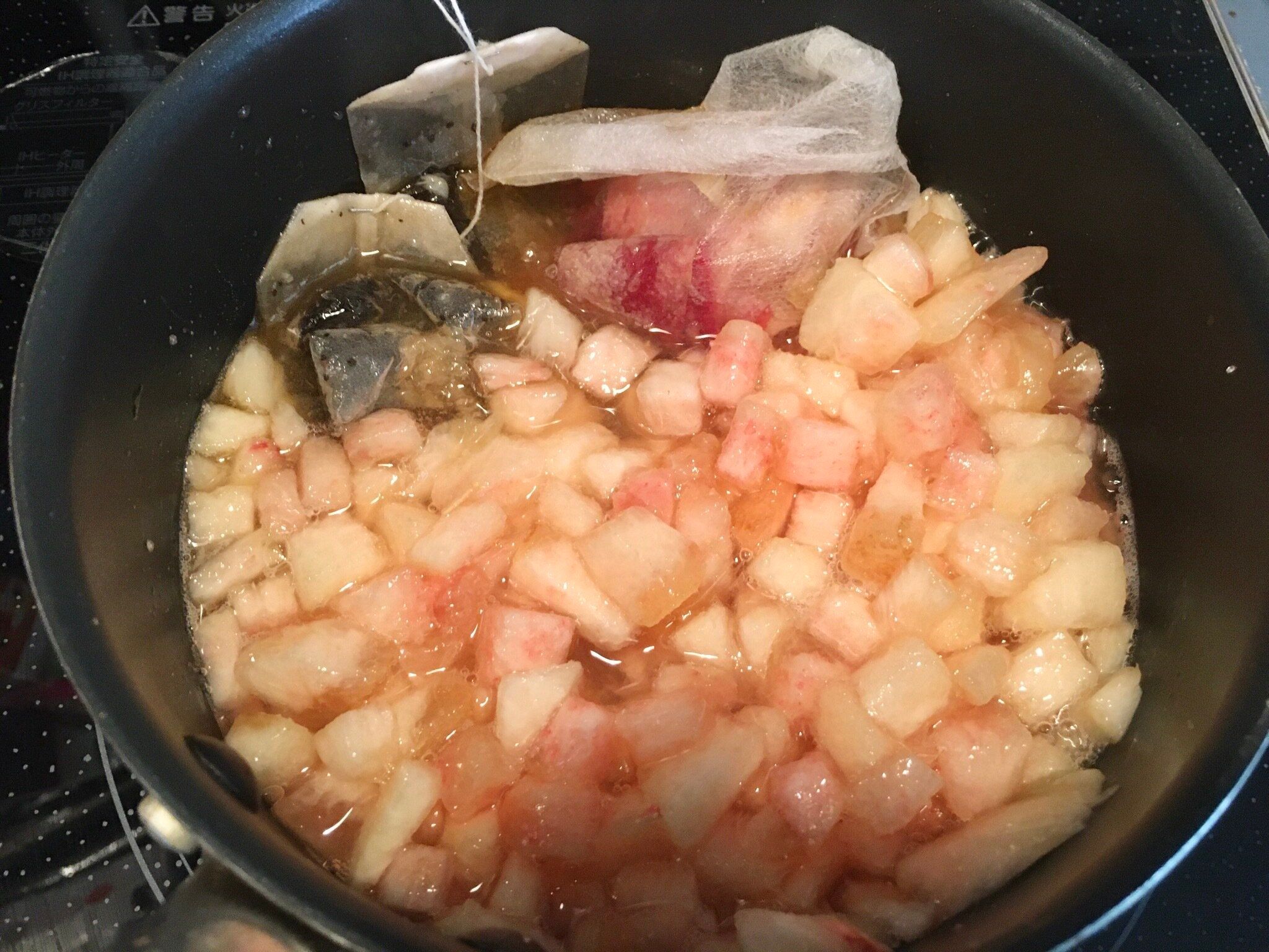 見切り品、1個100円の桃で桃のアールグレイジャムを作りました。