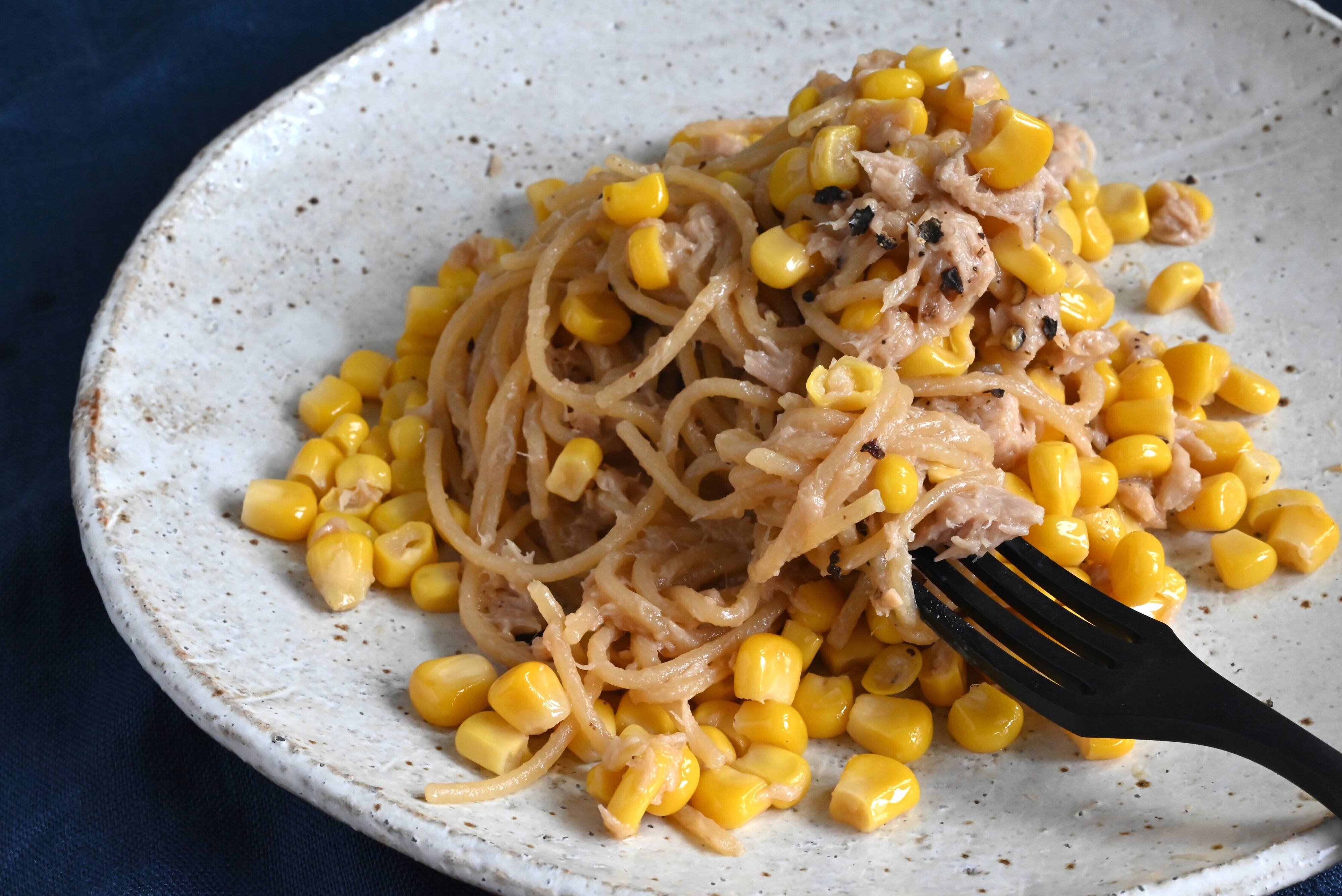 コーンのやさしい甘さ、ツナのうま味、バターのコクが合わさったとってもおいしいひと皿です。