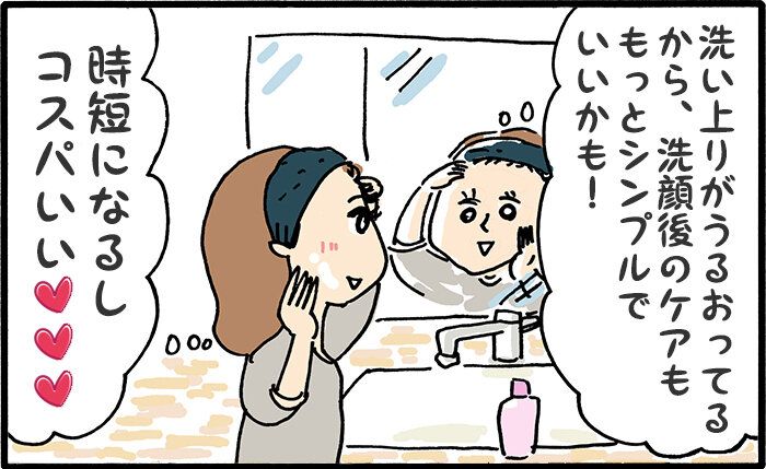 うるおい皮脂をキープしながら洗顔することでうるおい肌の土台が整うので、洗顔後のケアを今よりシンプルにすることもできます。そのため、保湿にかける時間を短縮できたり、使うアイテムを減らせたりと、時短&コストの見直しにもつながります。シンプルケアを実践する方にもおすすめ。