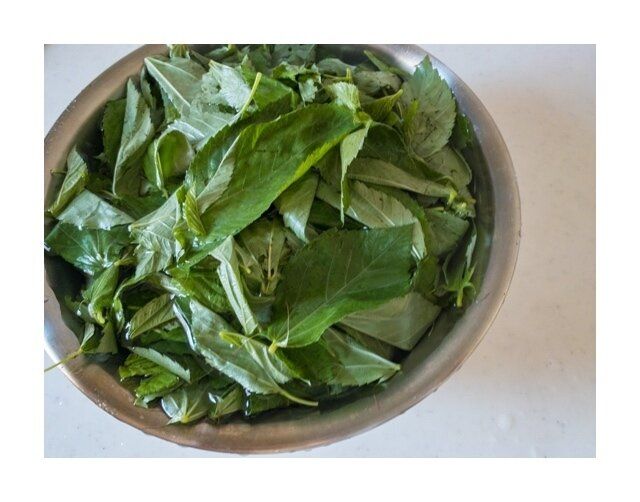 できあがり!生のモロヘイヤを食べるときはしっかり洗うことがポイントです。