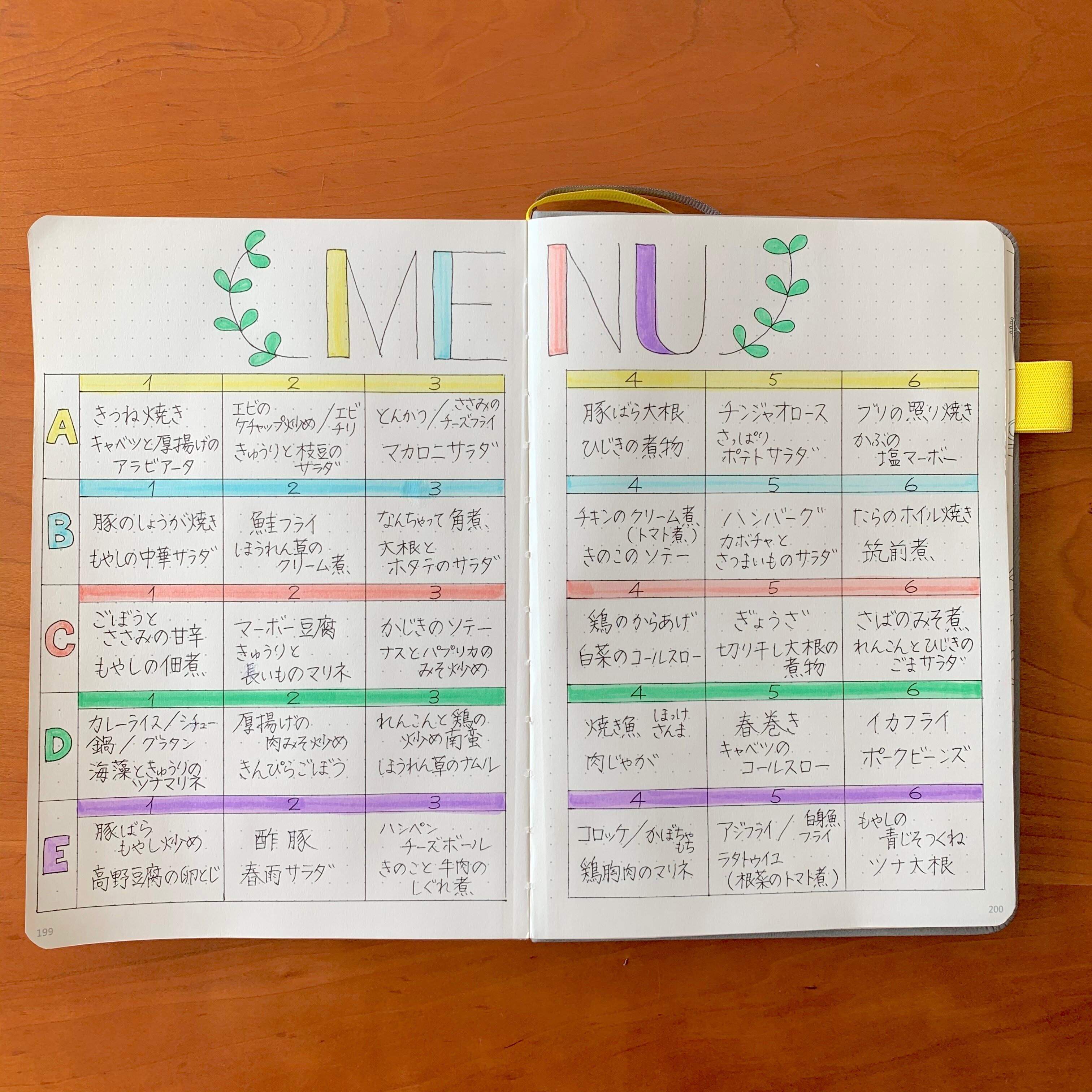 いきなり5週分の献立を作るのは結構大変です。私の場合、そもそもレパートリーが5週分もありませんでした。はじめてリストアップした時は10日分くらいしか献立が作れませんでした。でも、それでよいのです。はじめは1週間分のメニューをローテーションすることから始めて、少しずつメニューを増やしていきましょう。