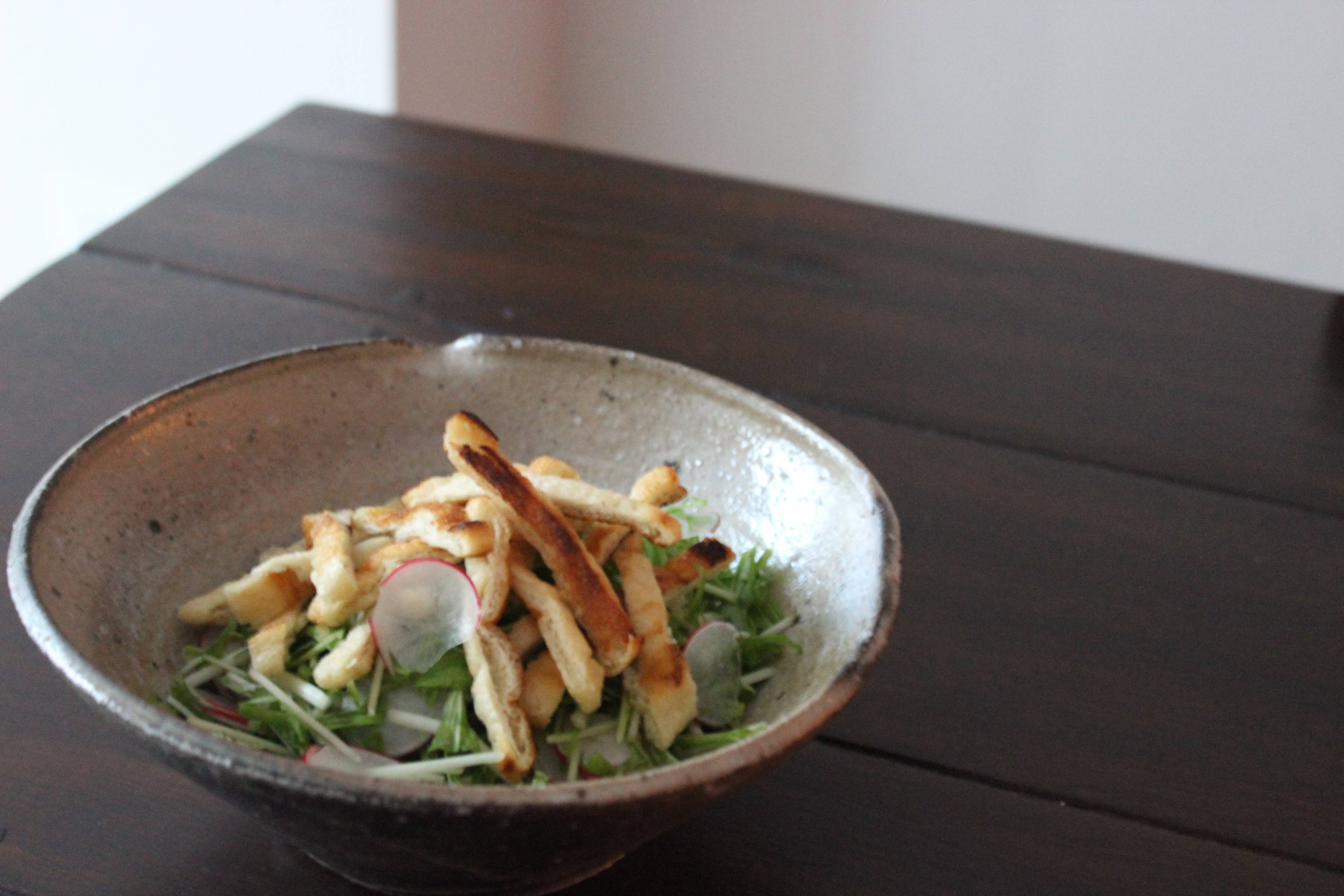 3.【水菜】+油揚げでサラダ