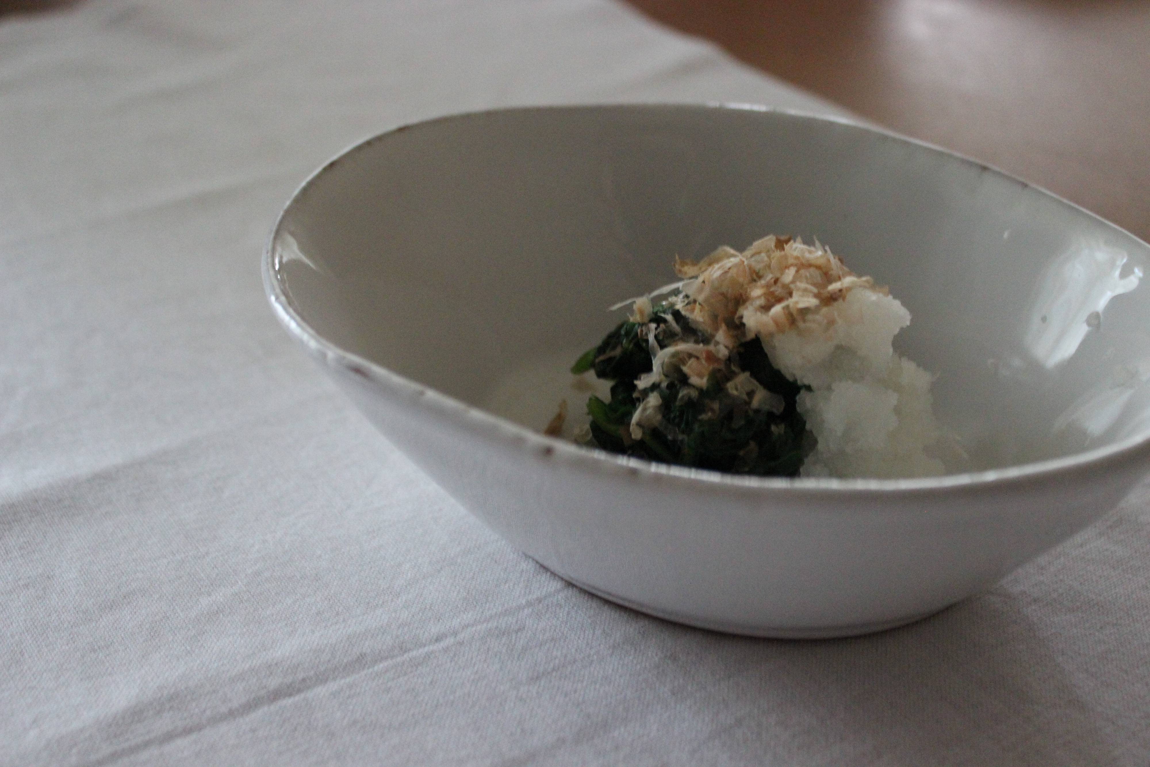 普通なら茹でるだけで終わってしまうほうれん草のお浸しですが、「大根おろしを添える」という1ステップを加えるだけで手抜き感がぐっとなくなり、美味しさもぐんとアップします。