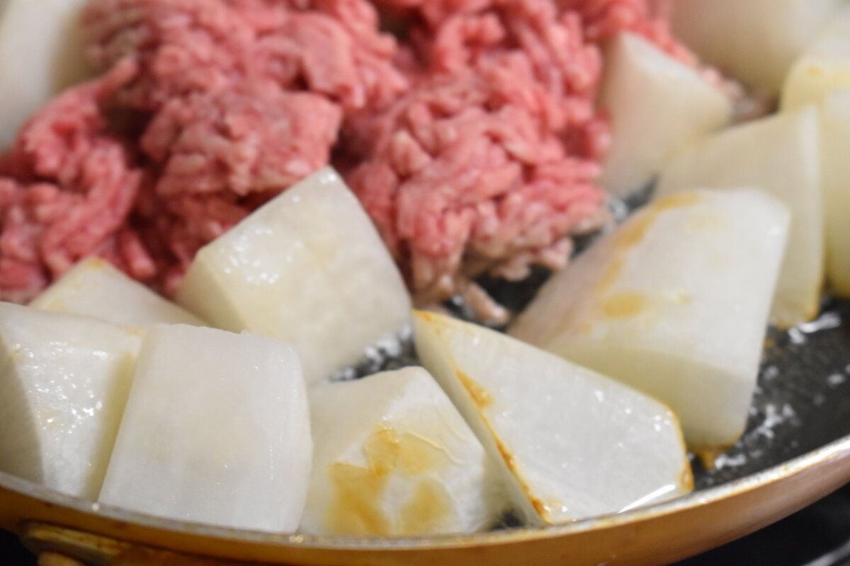 1:大根を炒める