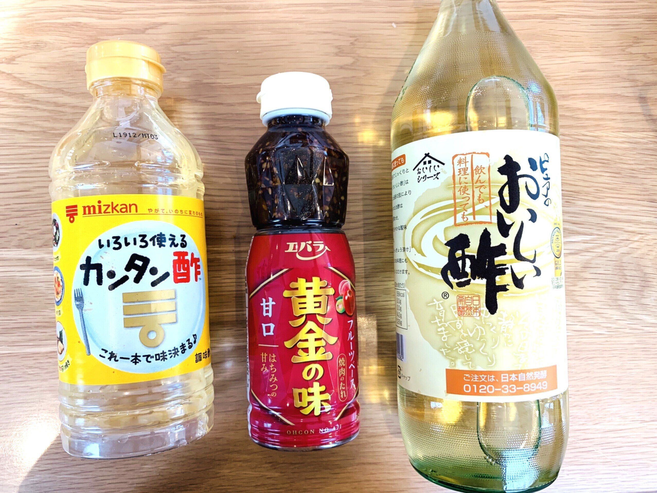 調味酢やすし酢など、甘味のついたお酢とタレを合わせると、タレの濃厚な味わいがさっぱりとアレンジできます。